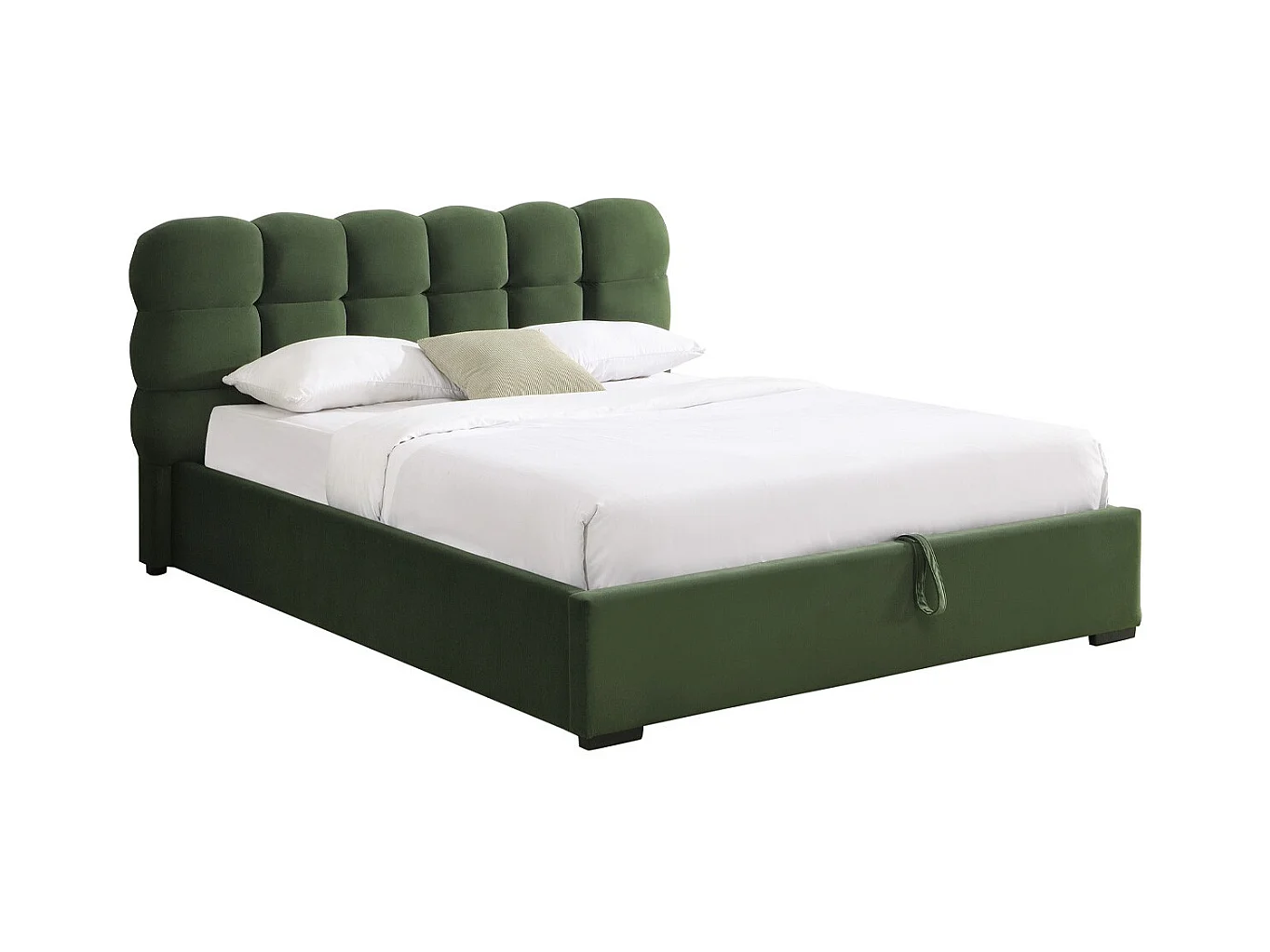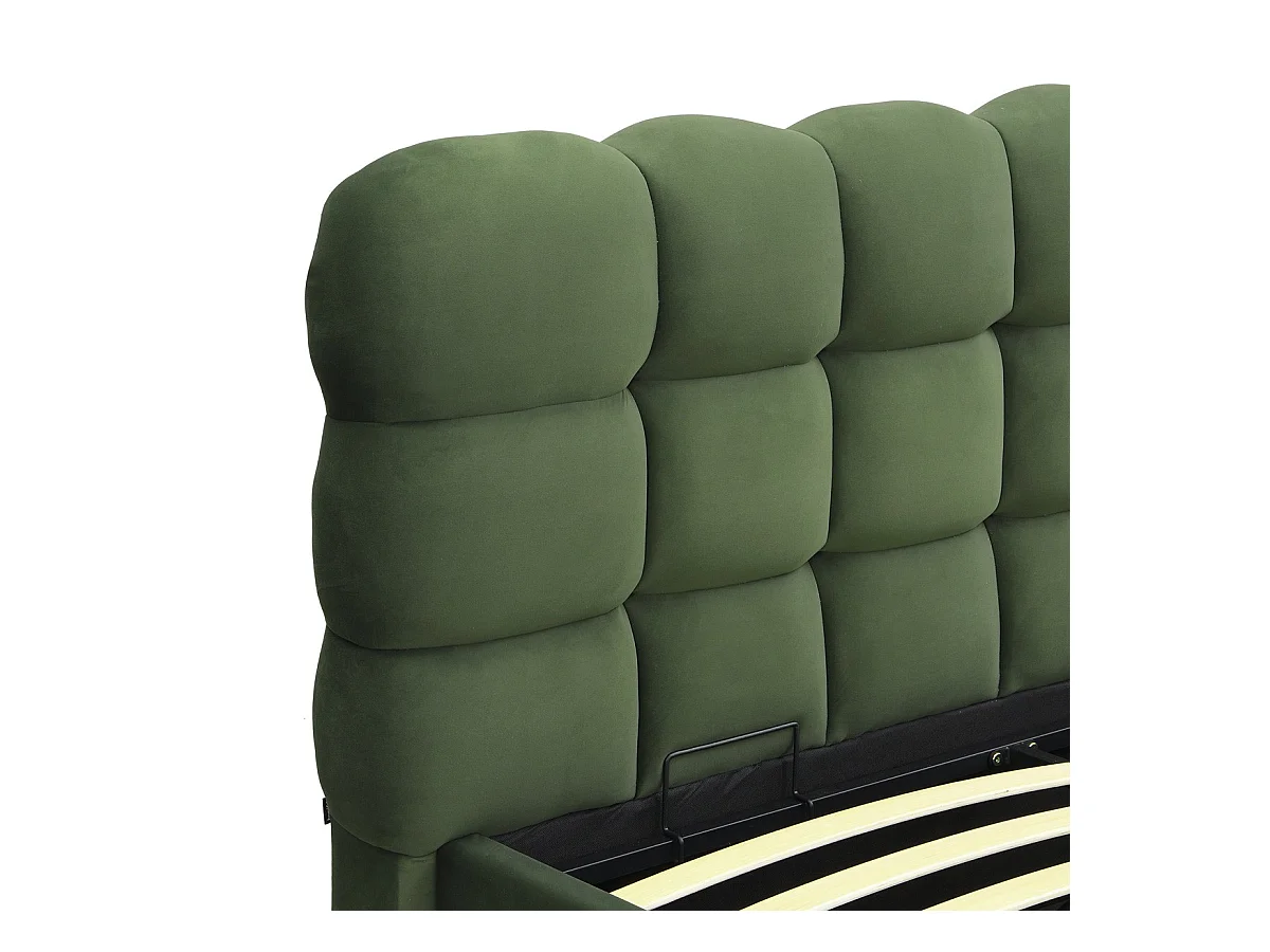 Lit coffre adulte 180x200 cm avec sommier et tête de lit capitonnée en velours vert kaki - Lola