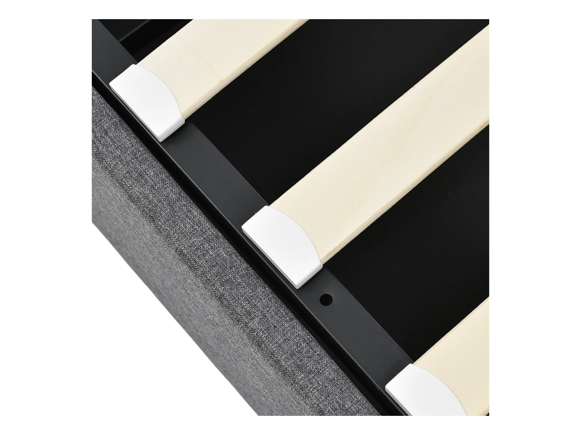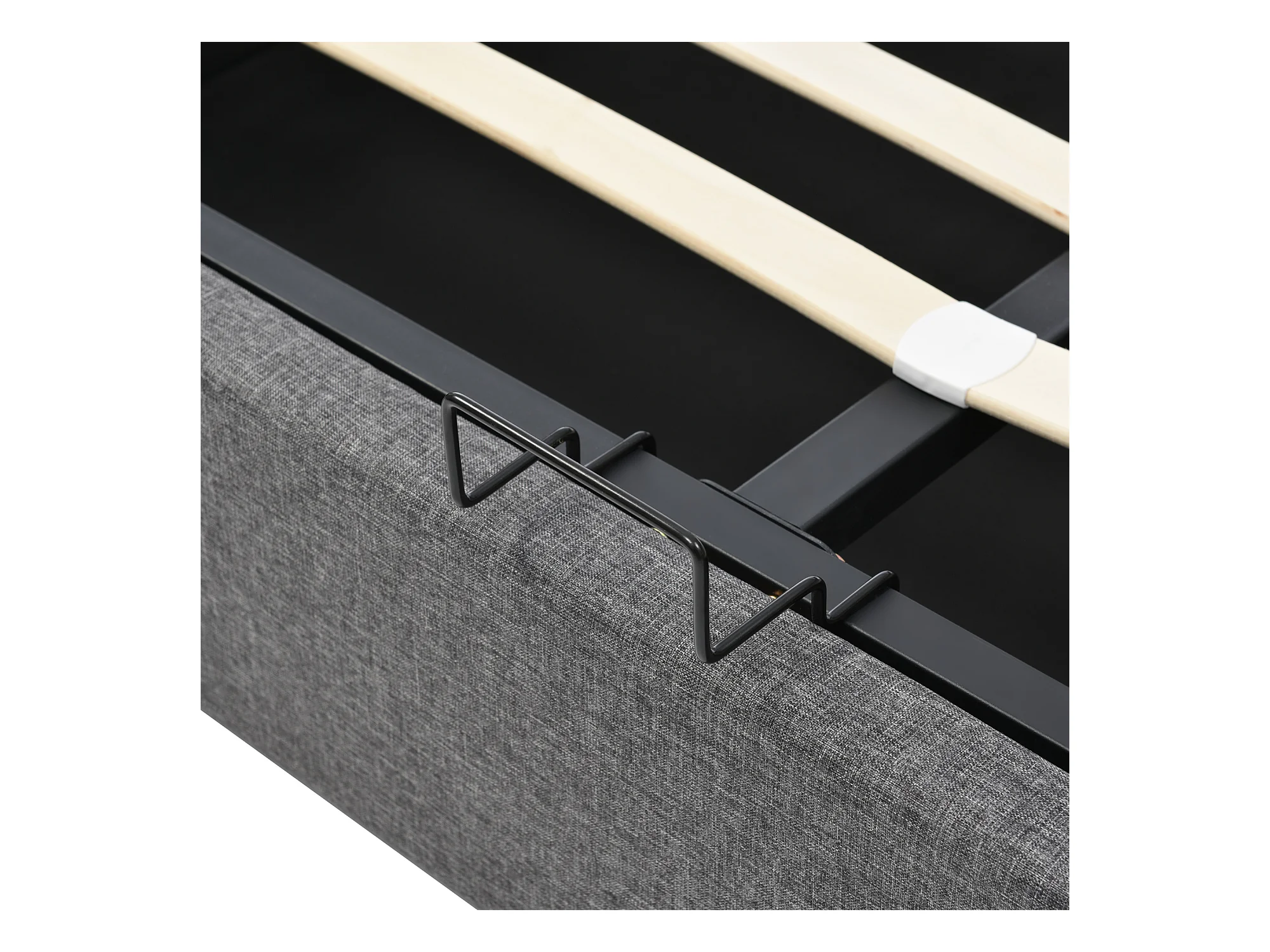 Lit coffre 180x200 cm avec sommier - tête de lit rembourrée avec appui-tête réglable - lin gris (sans matelas)