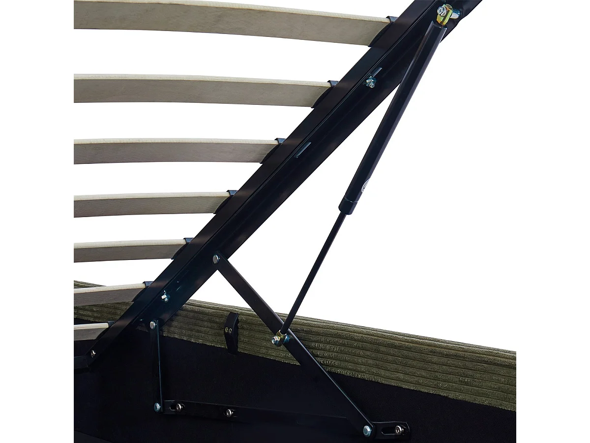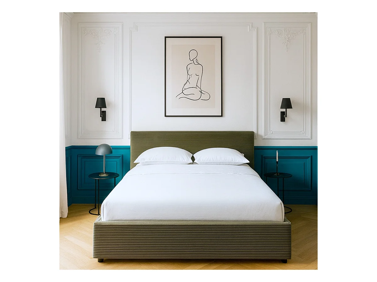 Lit coffre adulte 180x200 cm avec tête de lit matelassée en velours côtelé vert et sommier - Tina