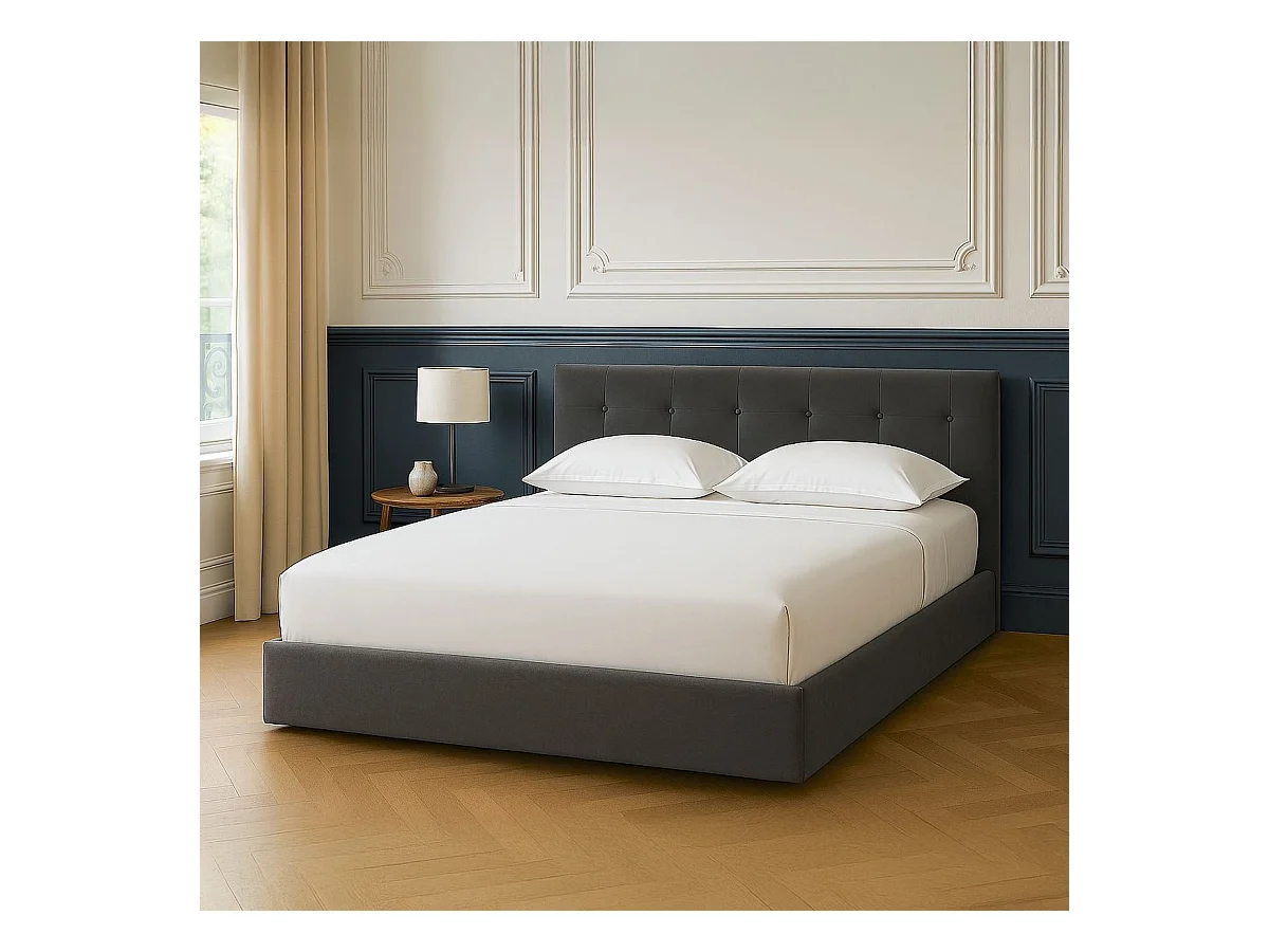 Lit coffre adulte 180x200 cm avec tête de lit matelassée en velours gris foncé et sommier - Tina