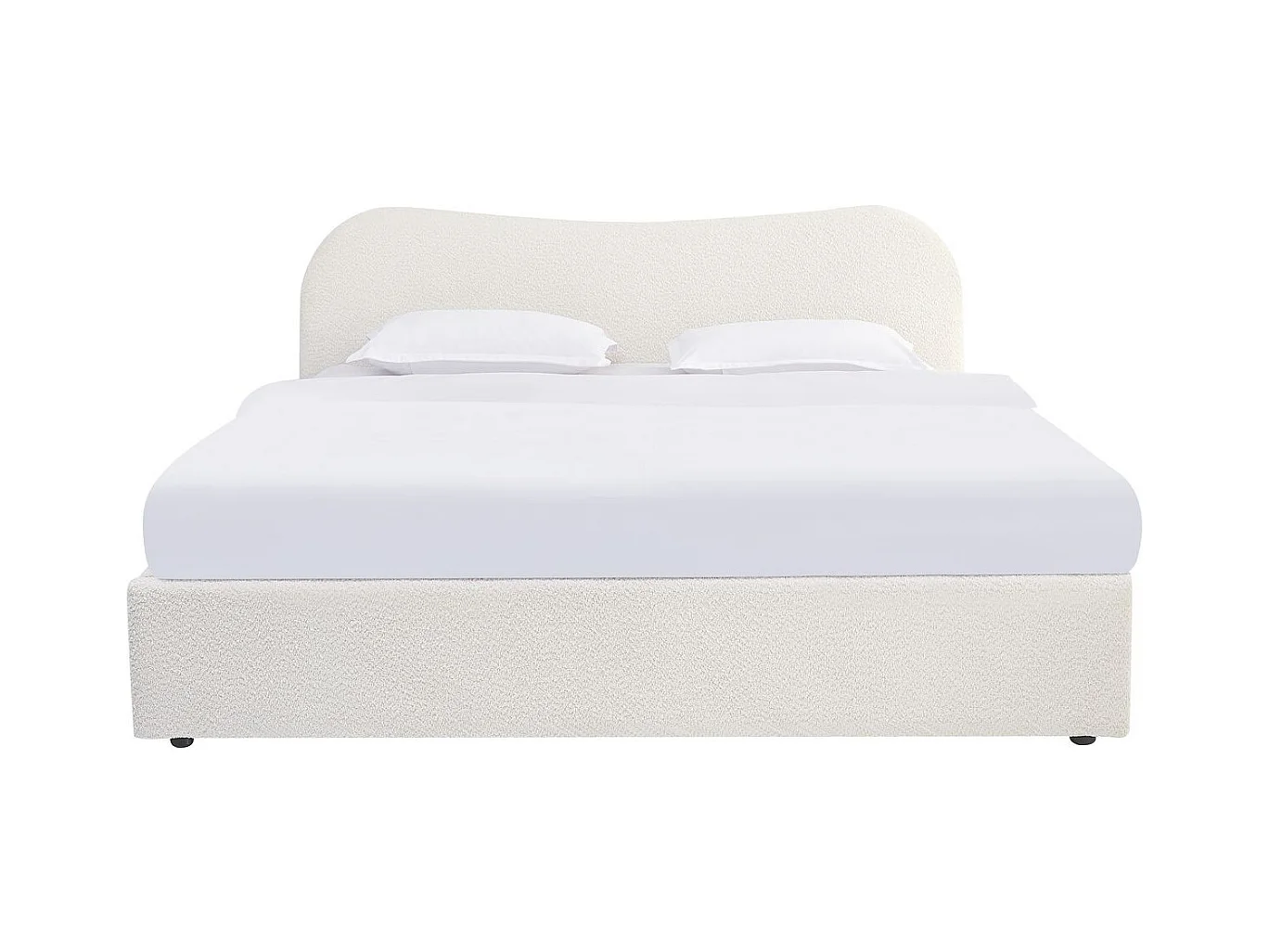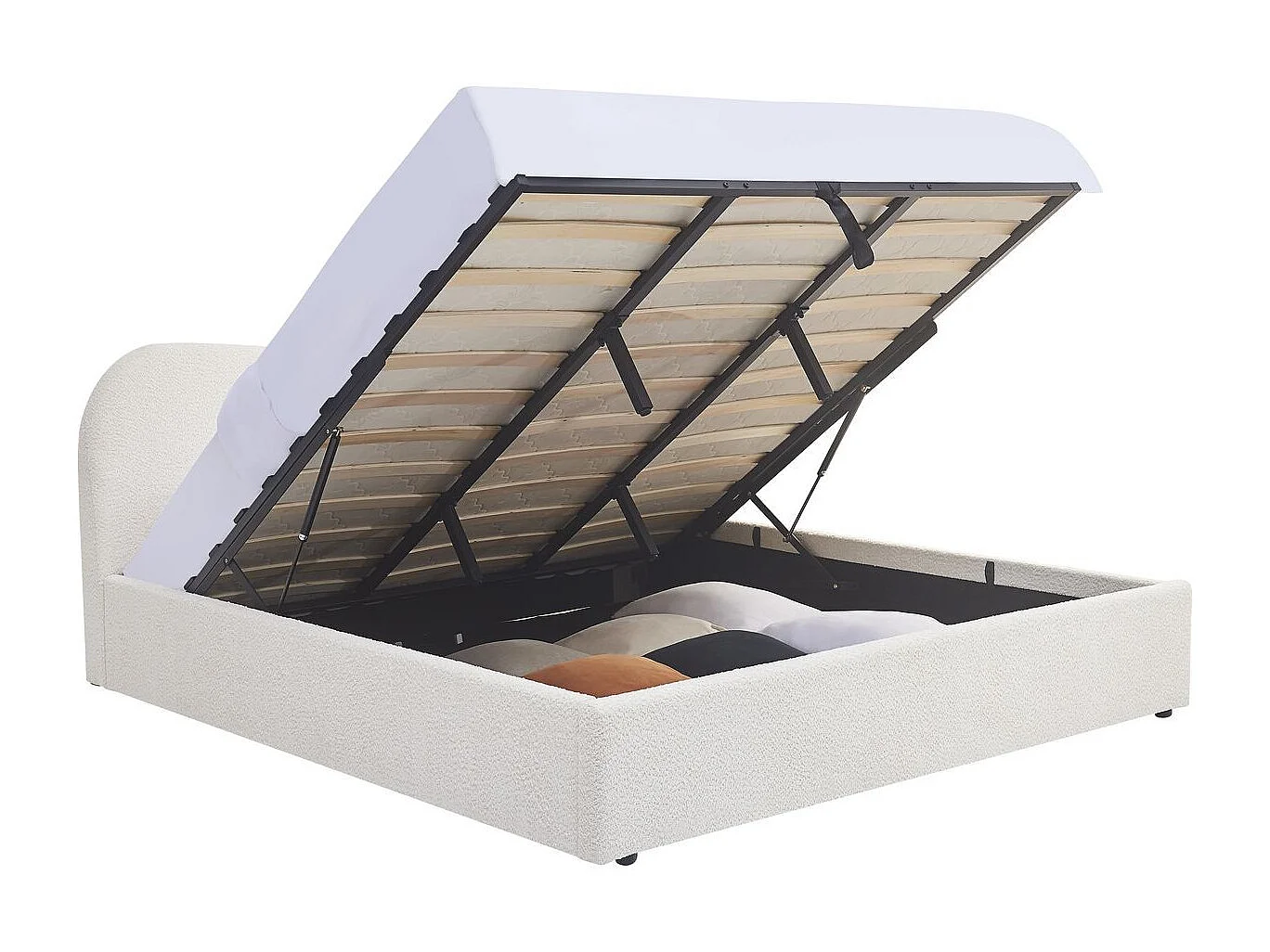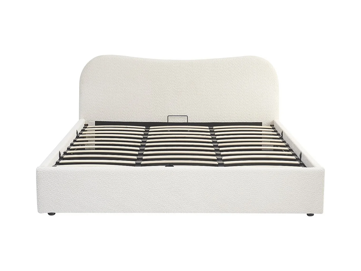 Lit coffre adulte 180x200 cm avec tête de lit matelassée en tissu bouclé beige - Suzon