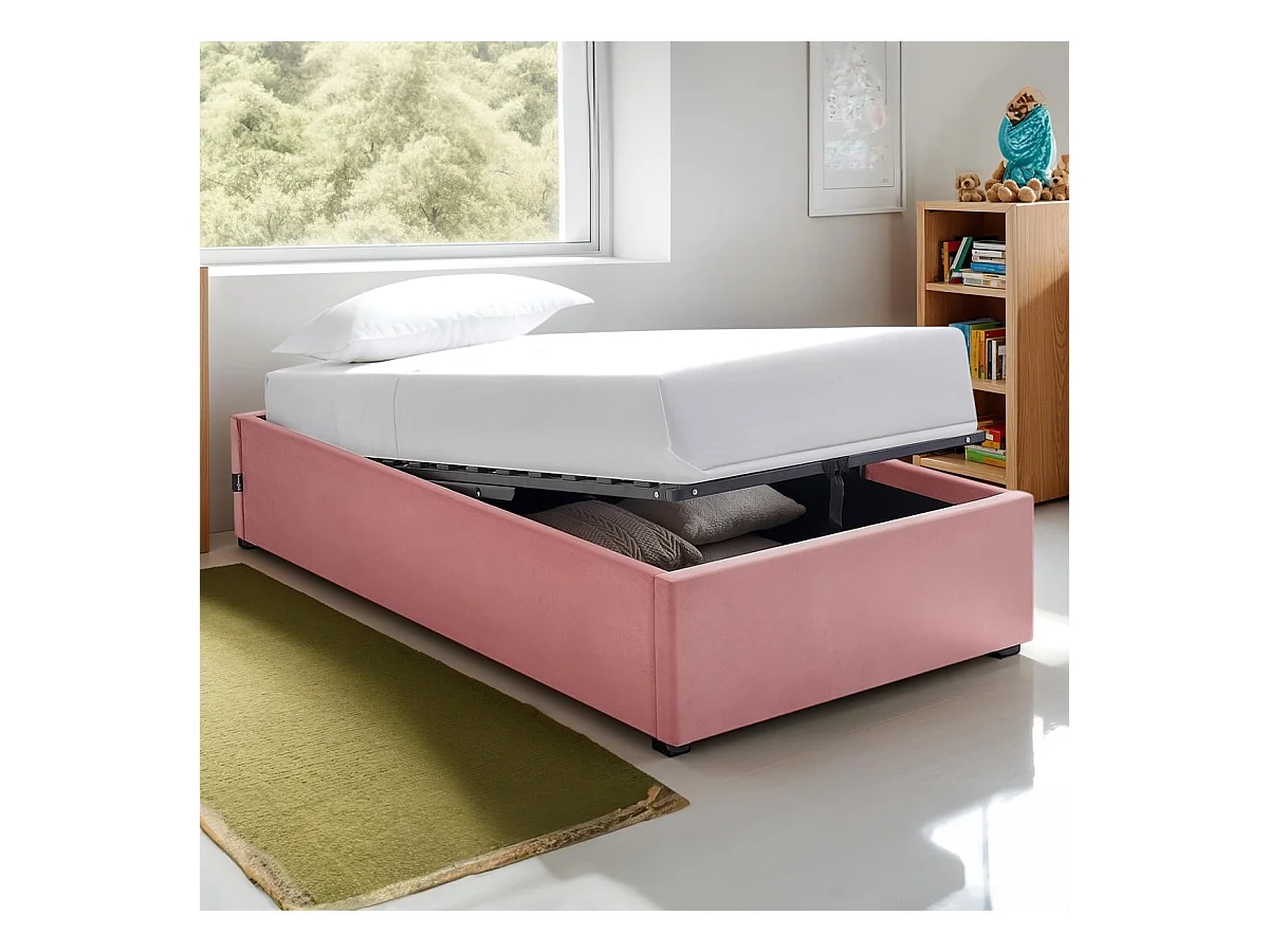 Lit coffre adulte 90x190 cm en velours rose avec sommier - Handy