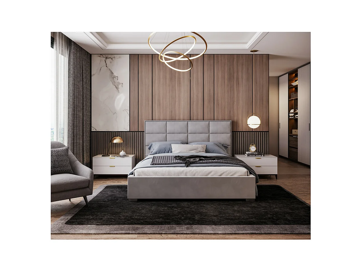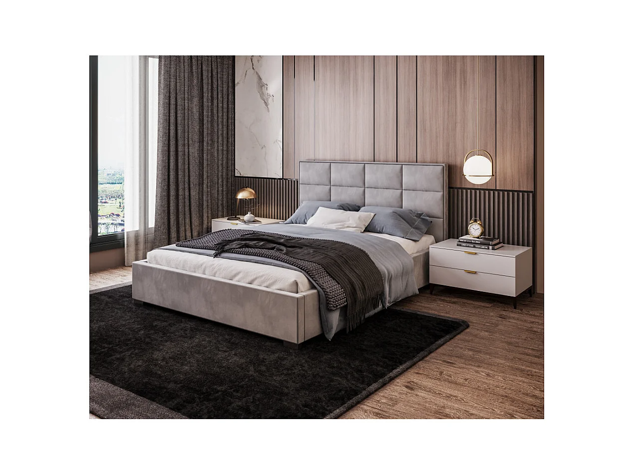 Lit coffre APOLLO 140 x 190 cm avec sommier à lattes relevable Gris Clair