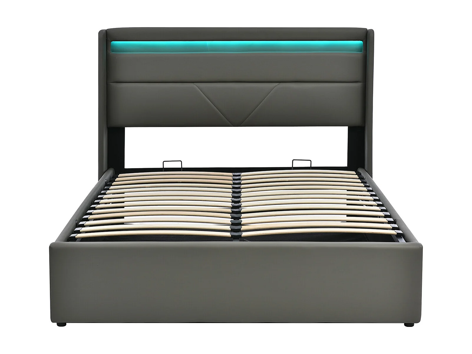 Lit coffre avec barre d'éclairage LED, Lit double Cadre de lit Lit rembourré 160x200cm, Lit fonctionnel, Gris (Avec télécommande)