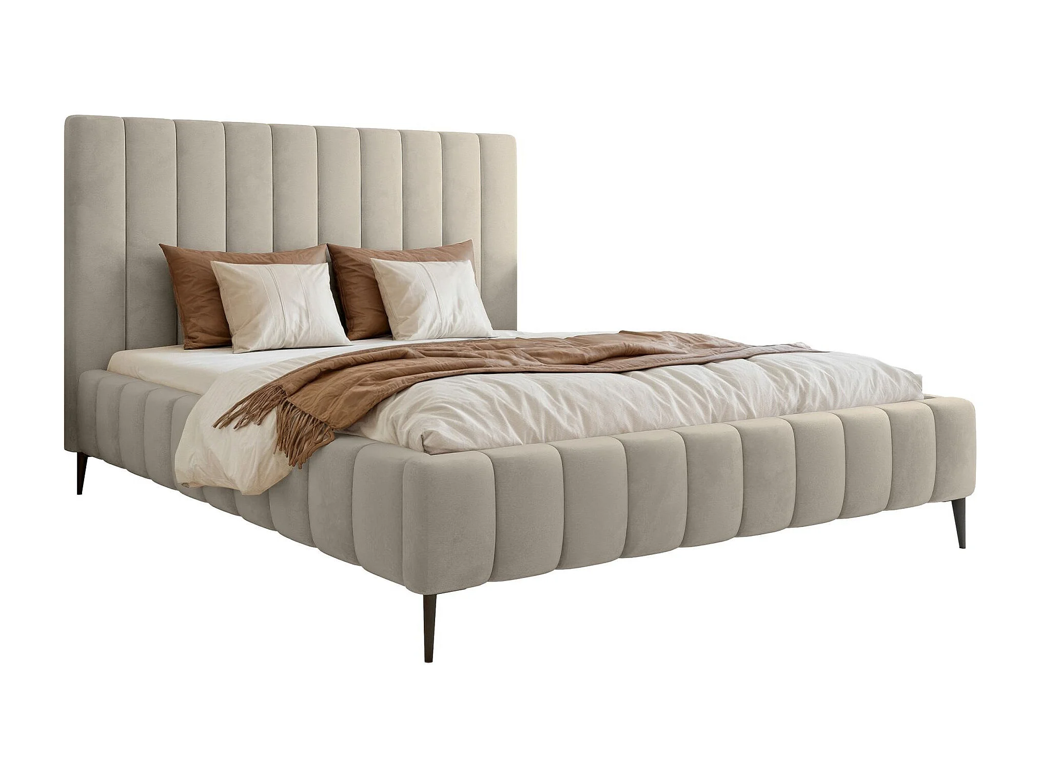 Lit coffre avec pieds - 180x200 cm - en tissu velours beige clair - FIARRO