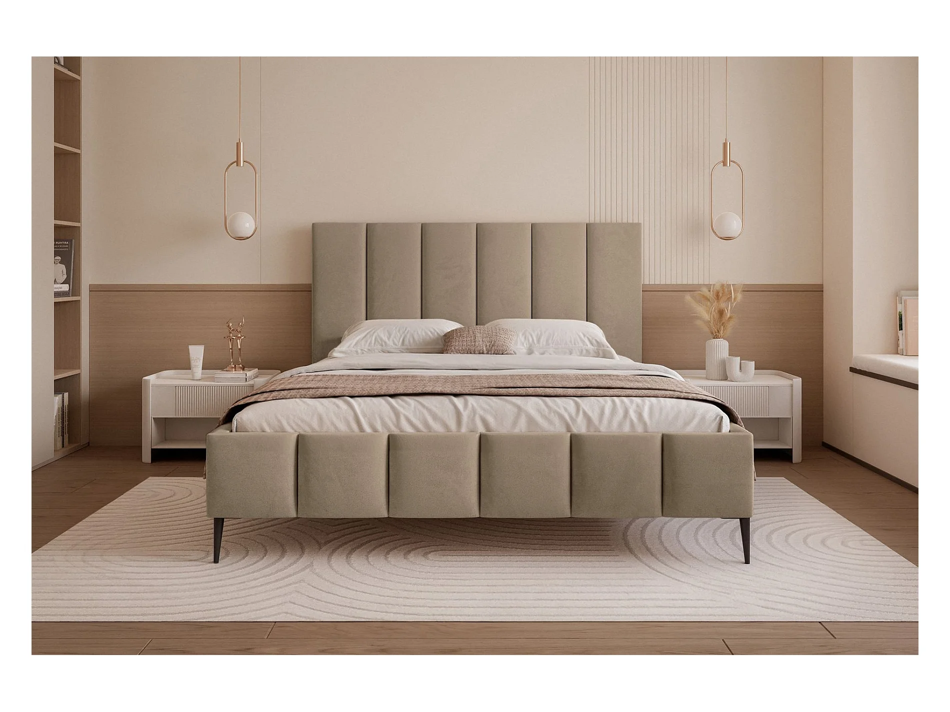 Lit coffre avec pieds - 180x200 cm - en tissu velours beige foncé - SARAFINO