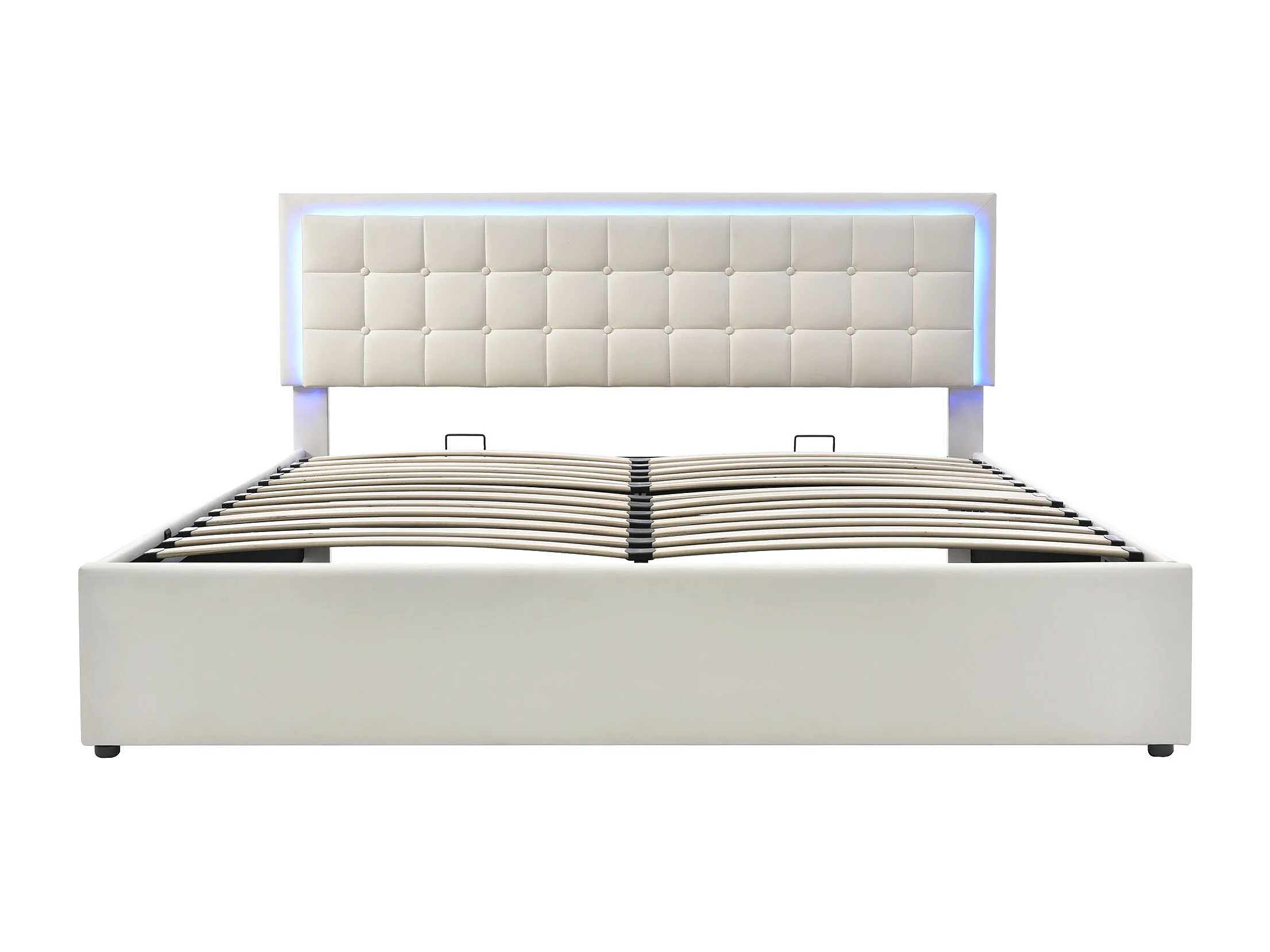 Lit coffre 160x200cm avec LED en similicuir - avec sommier à lattes - Blanc