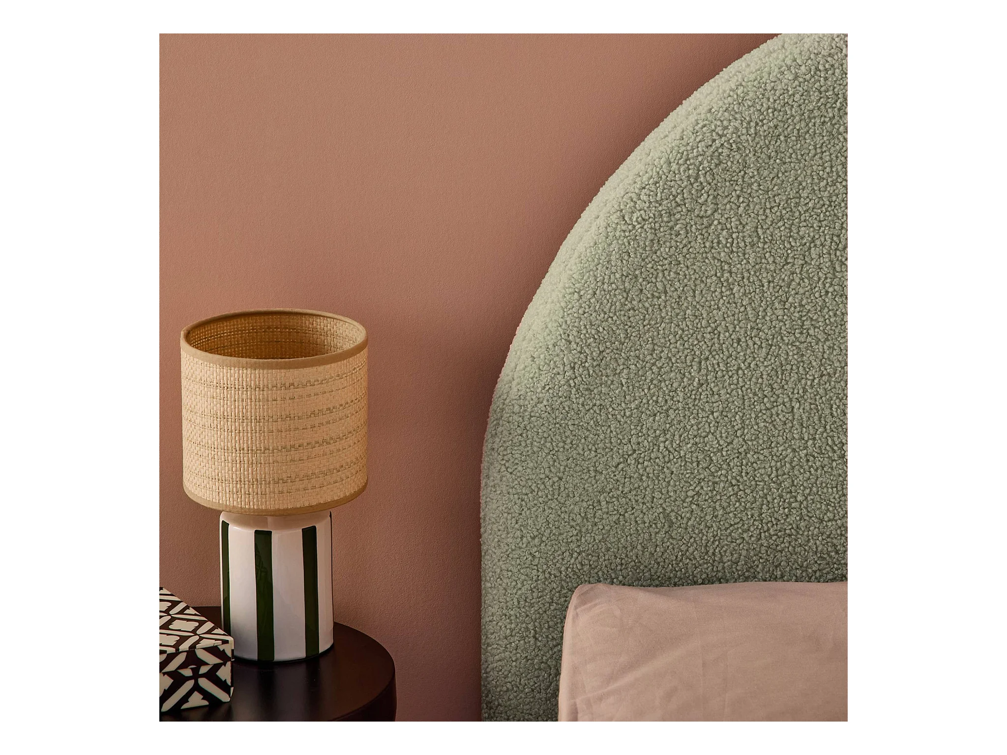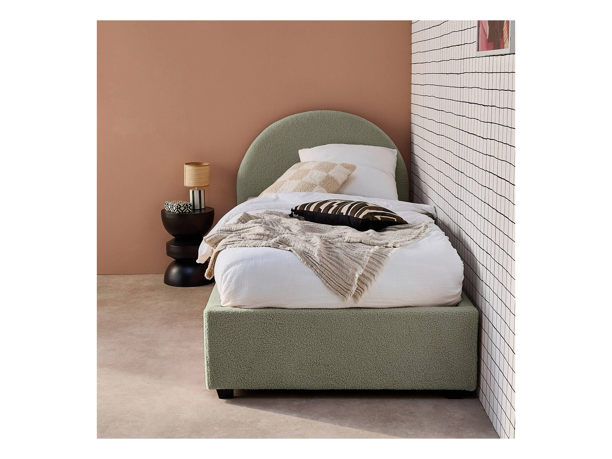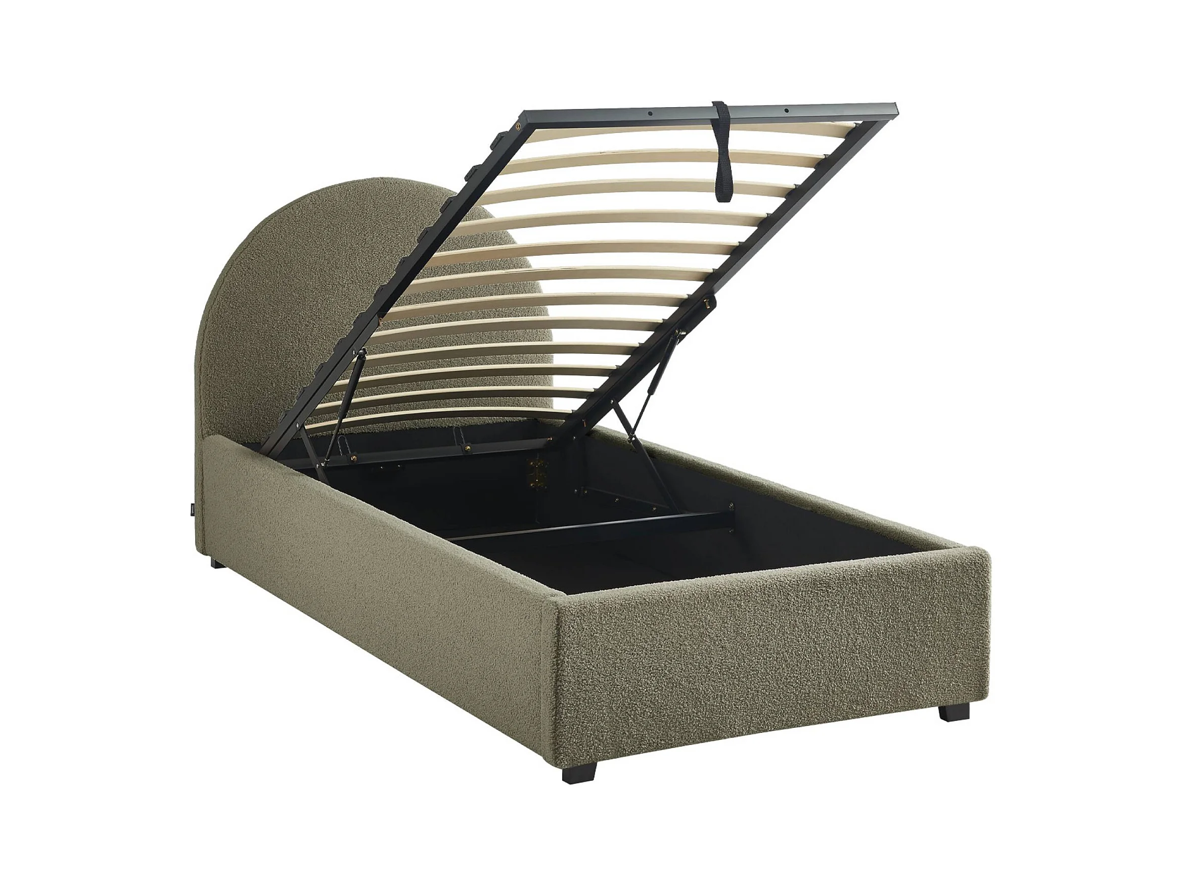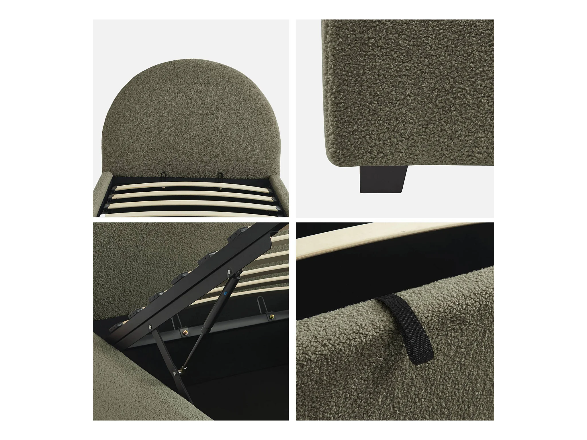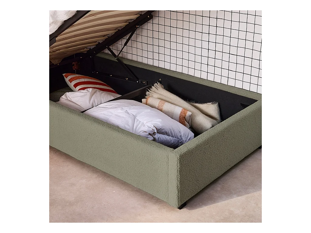 Lit coffre avec sommier à lattes et tête de lit. finition bouclette. kaki. L 206 x P 104 x H 102cm