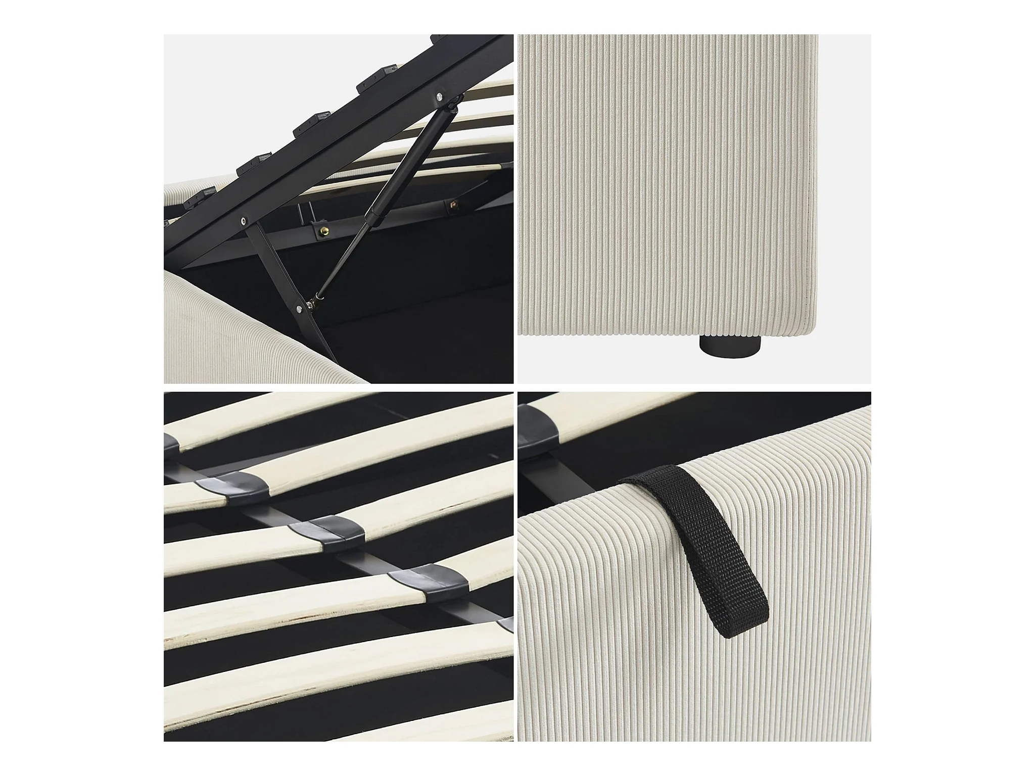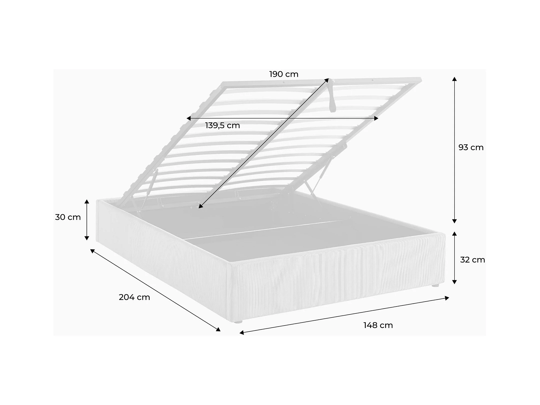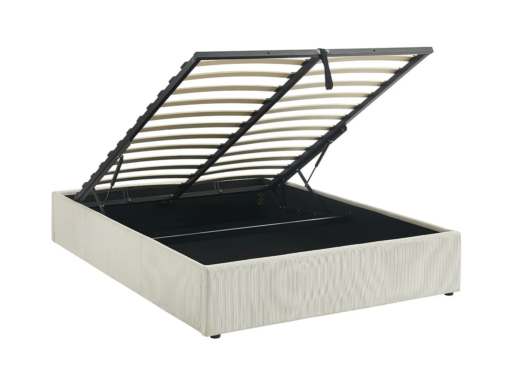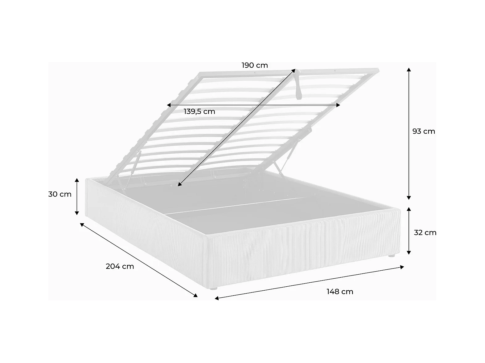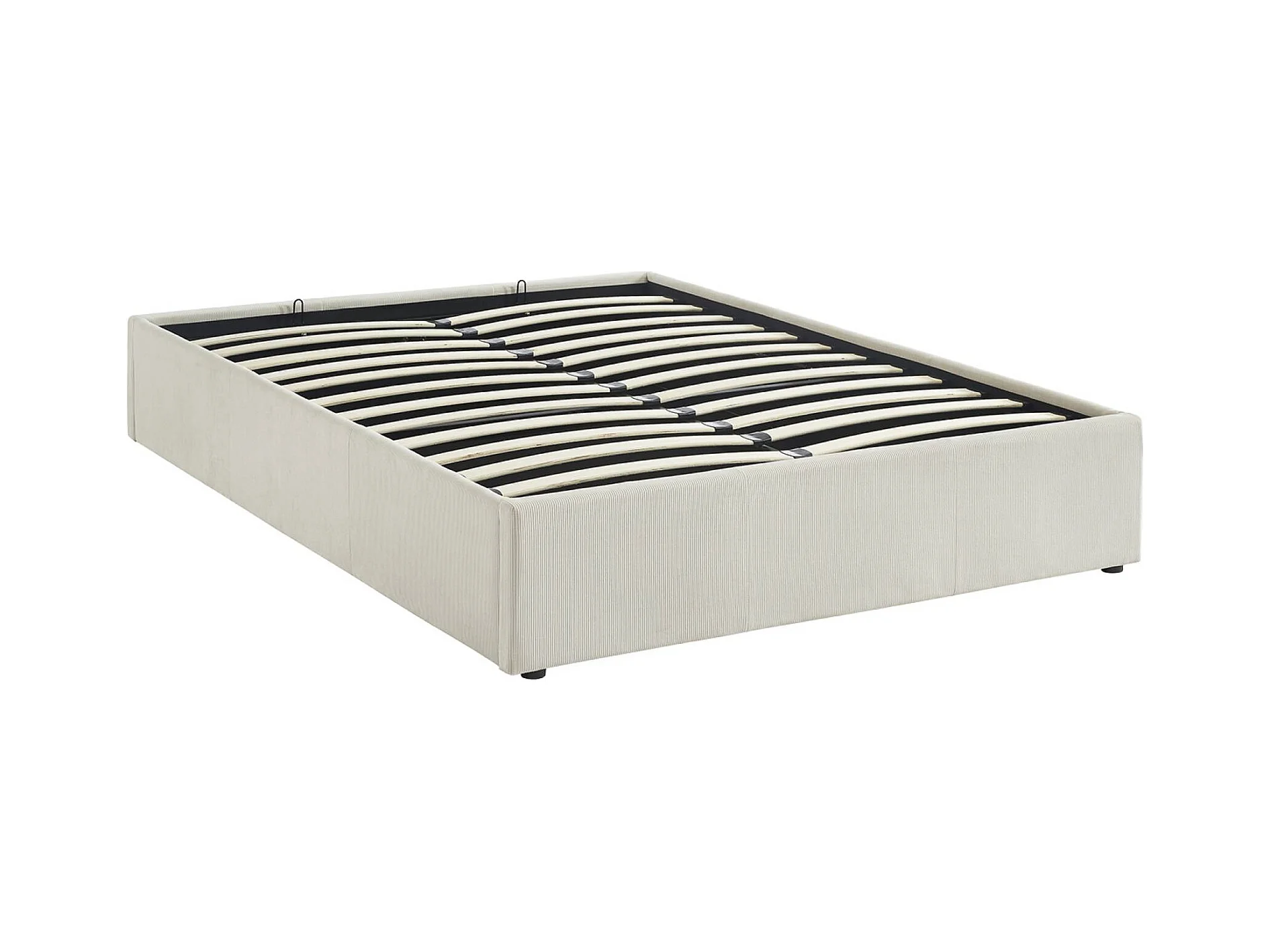 Lit coffre avec sommier à lattes. finition velours côtelé blanc. L 204 x P 148 x H 32cm