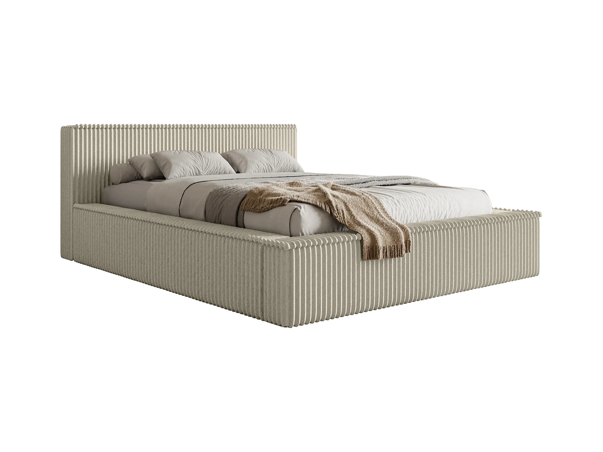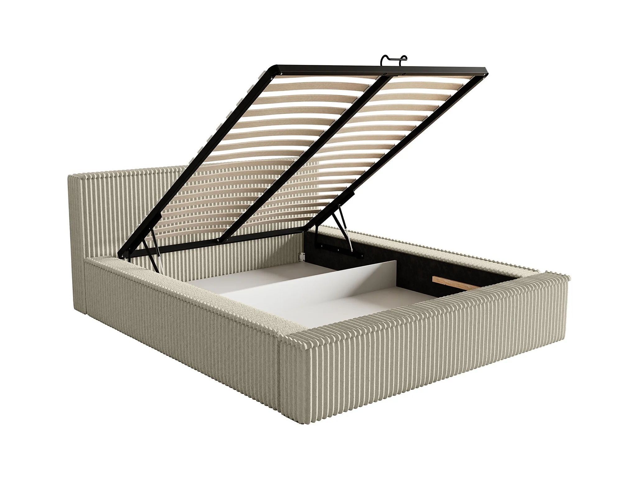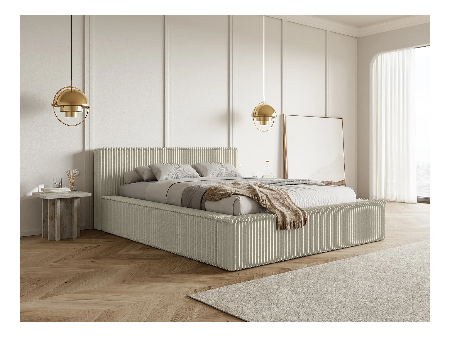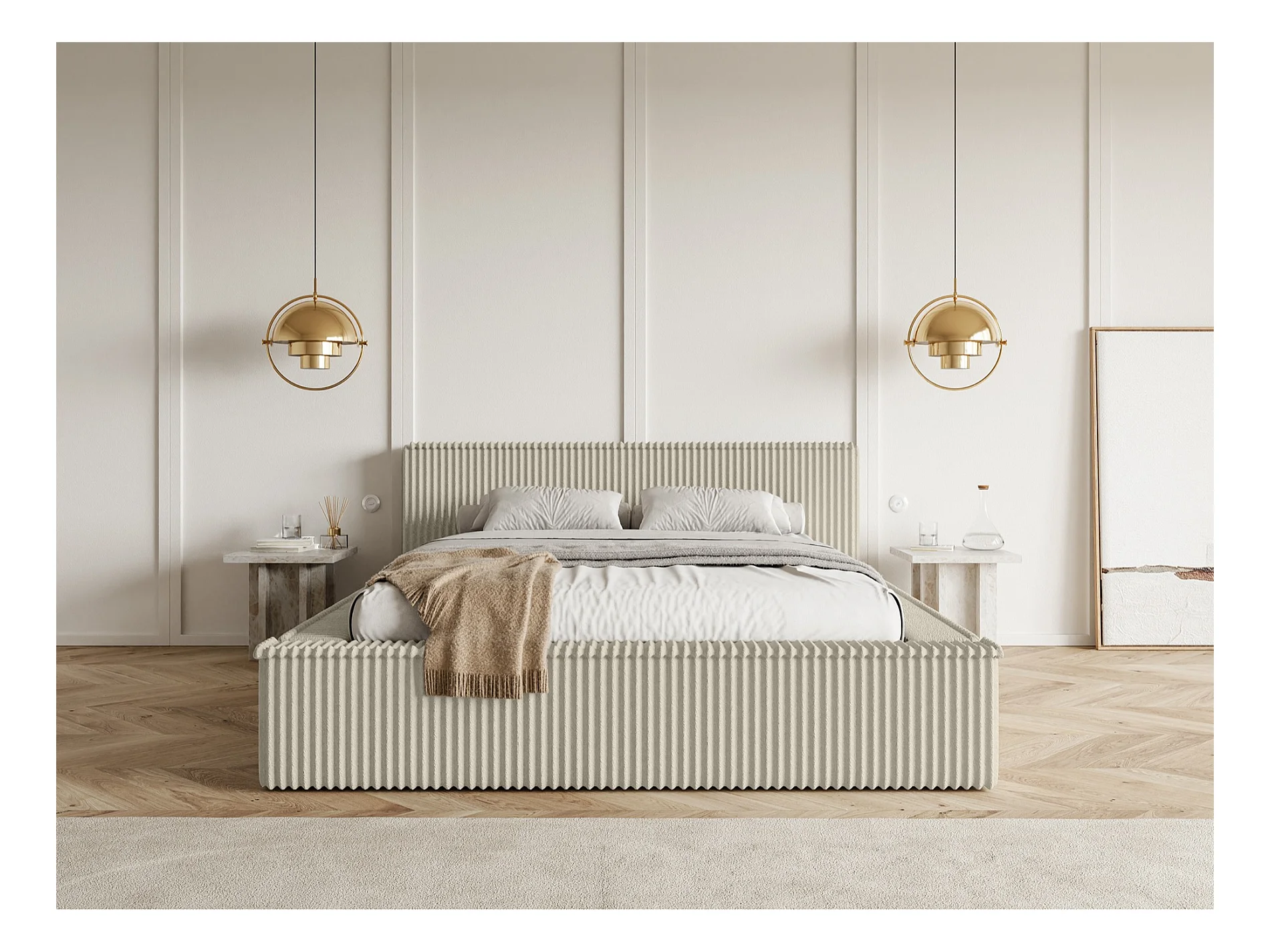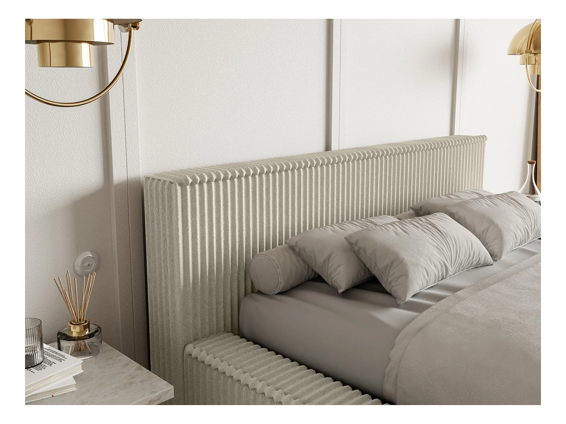 Lit coffre avec tête de lit - 180x200 cm - en velours côtelé beige clair - AFFOLIO
