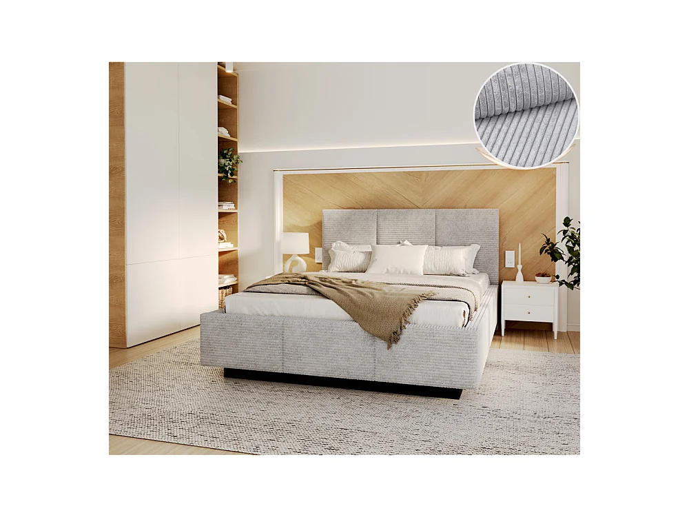 Lit coffre Aveiro velours côtelé 140 x 190 cm avec sommier à lattes relevable Gris Clair