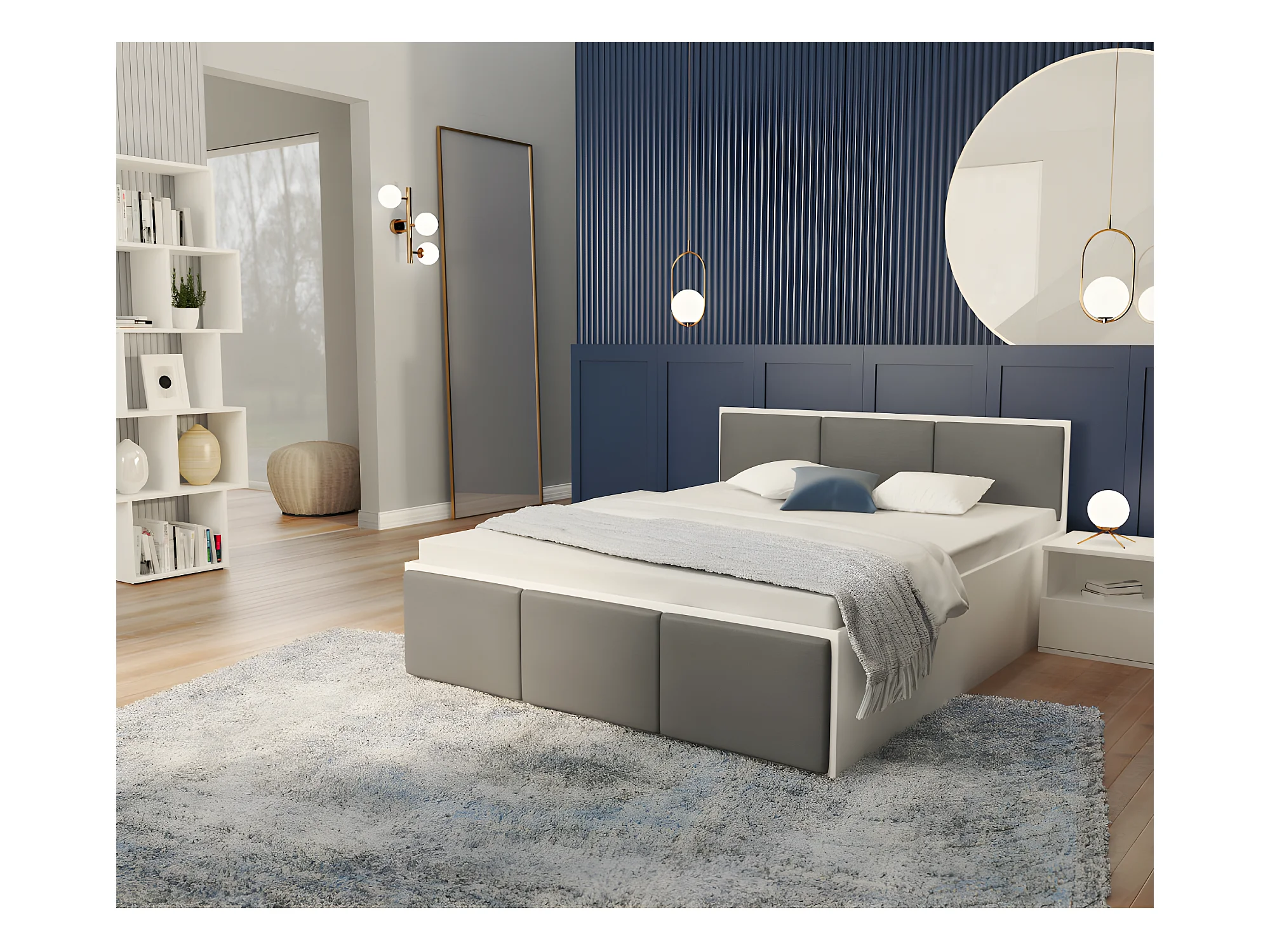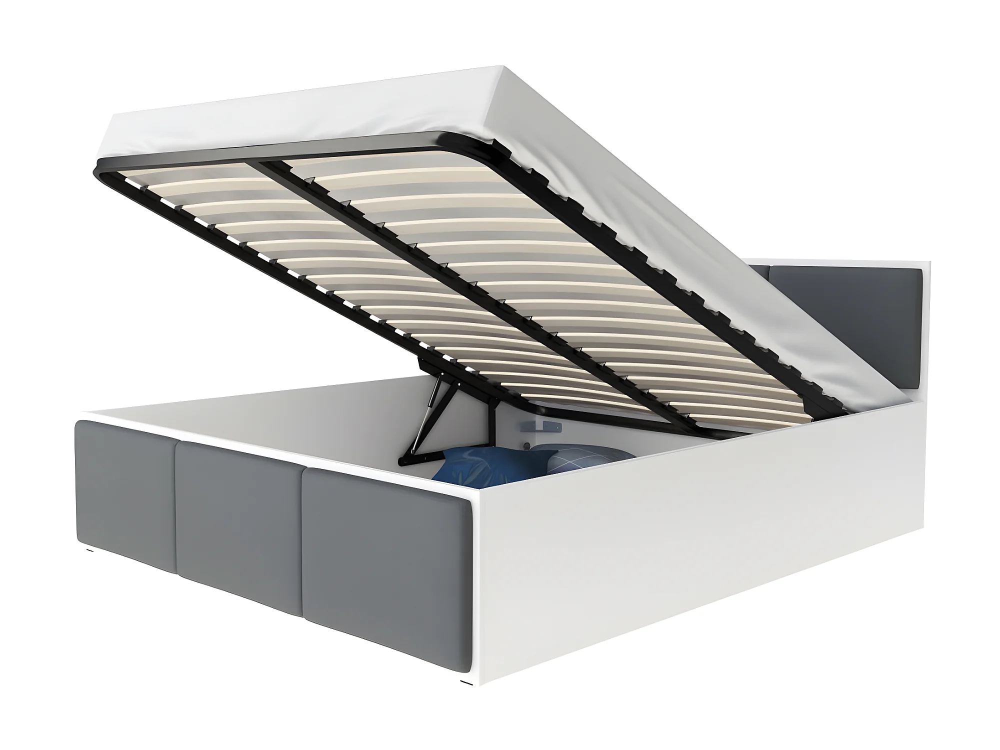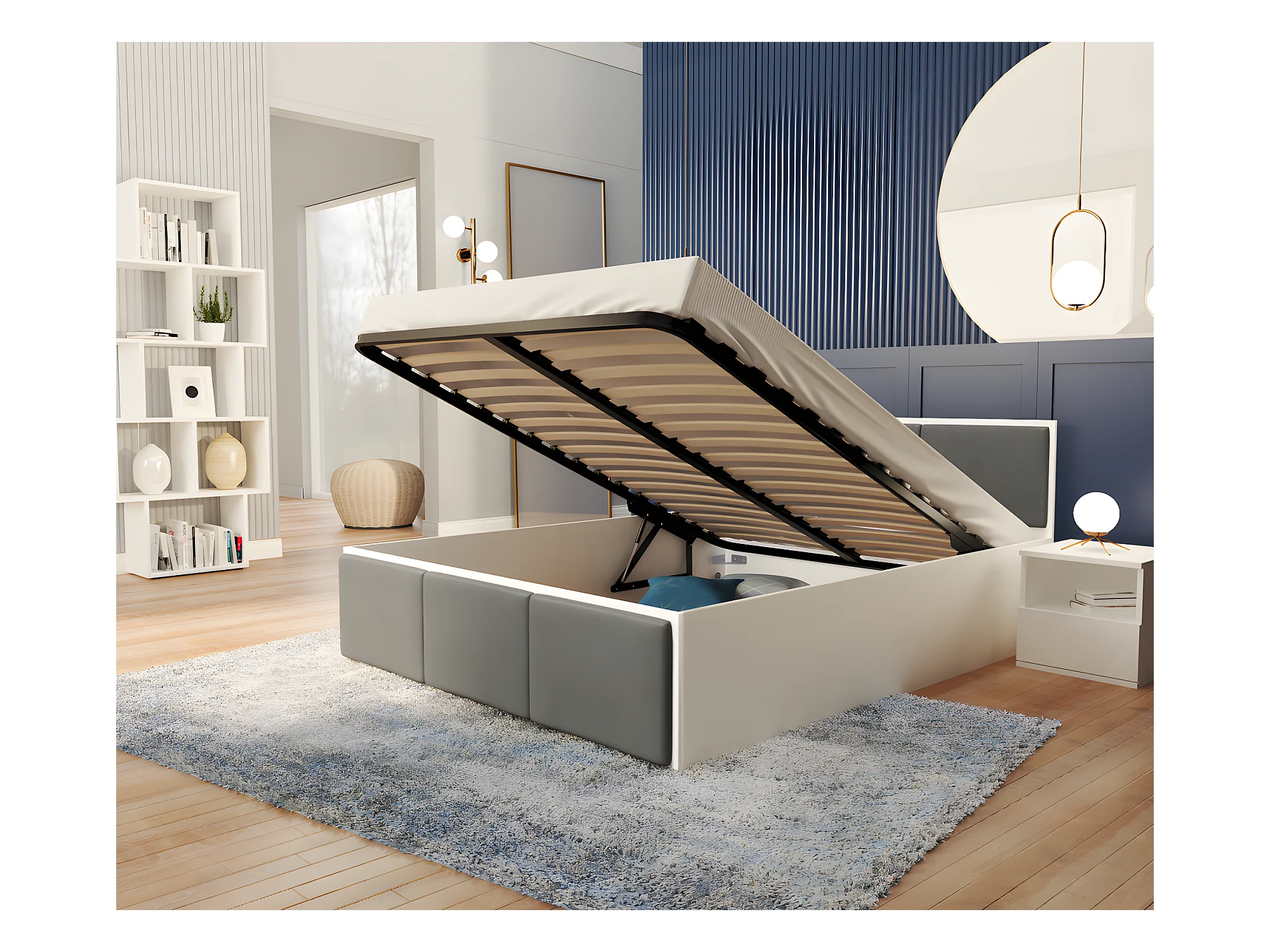 Lit coffre Barcelona 140 x 200 cm avec sommier à lattes relevable Blanc - Gris foncé