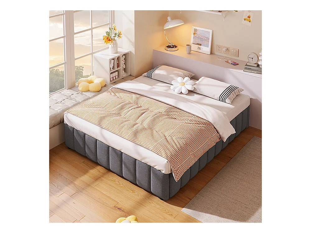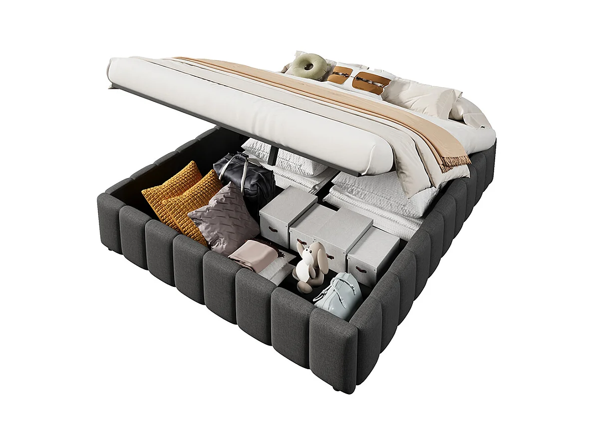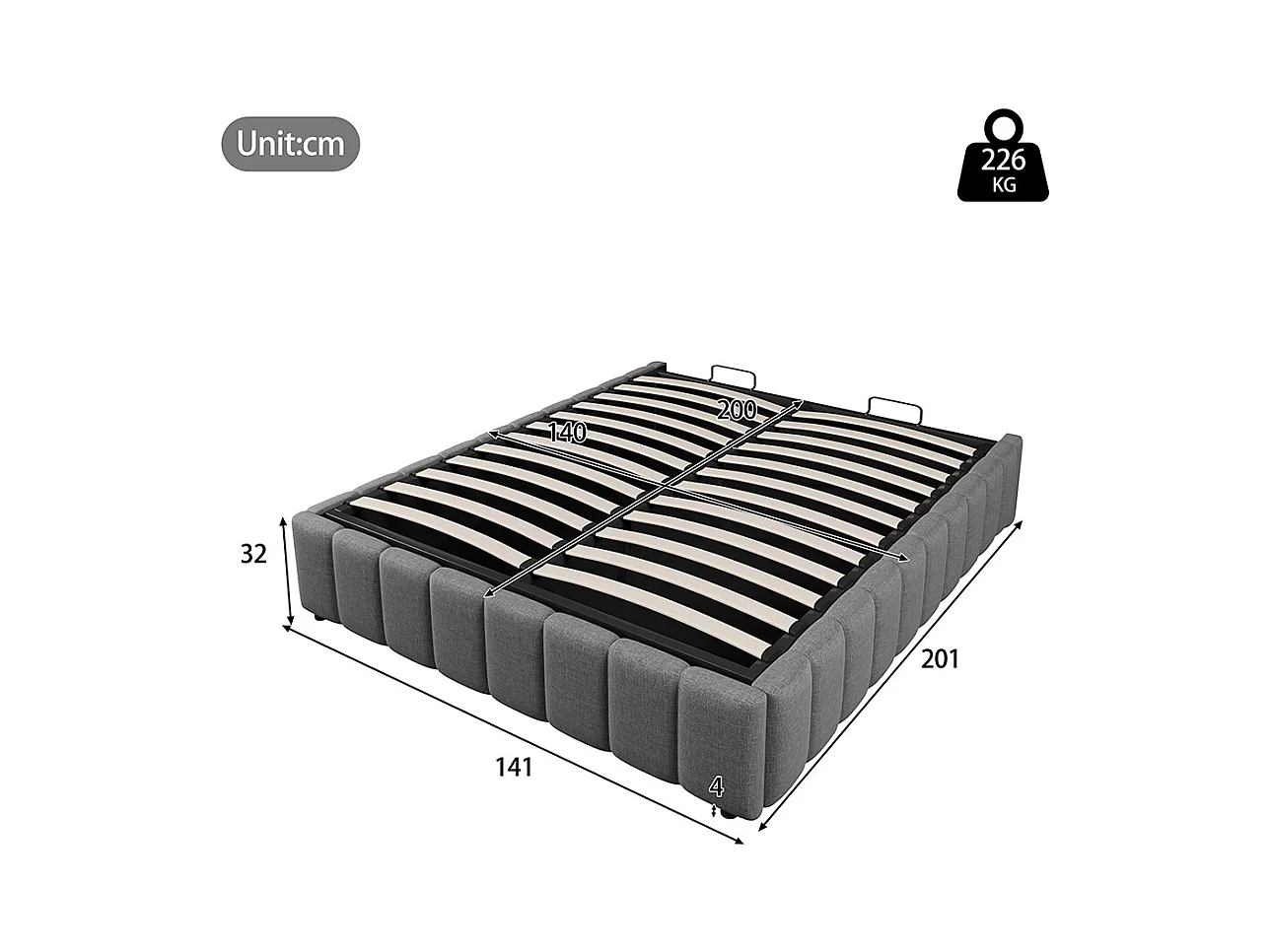 Lit coffre Cadre de lit 140x200 lit rembourré suspension hydraulique sans tête de lit sans matelas Gris