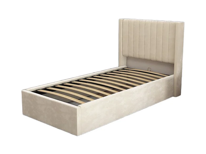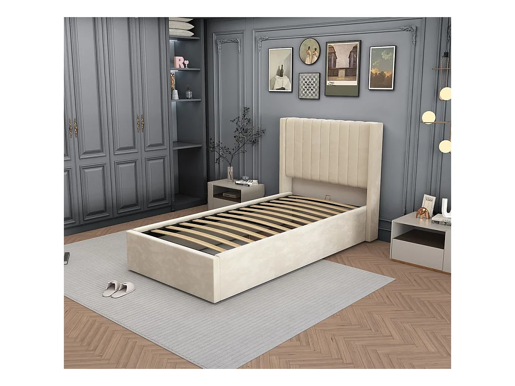 LIT COFFRE CAMILLE en velours BEIGE 90X190CM