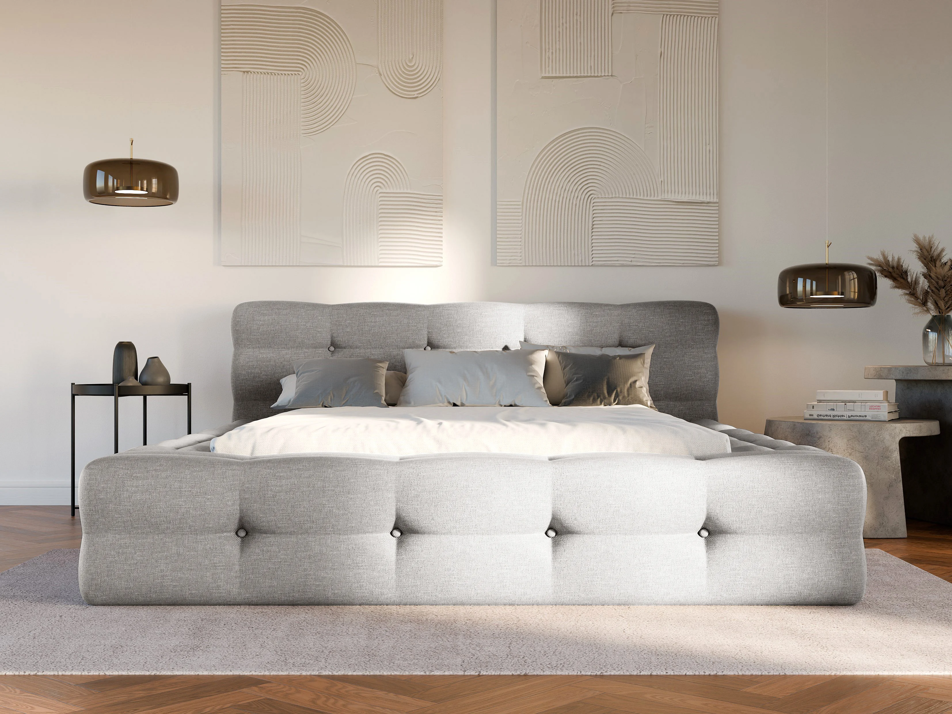 Lit coffre capitonné 140 x 190 cm - Tissu chiné - Gris clair - LERUCO de Pascal Morabito