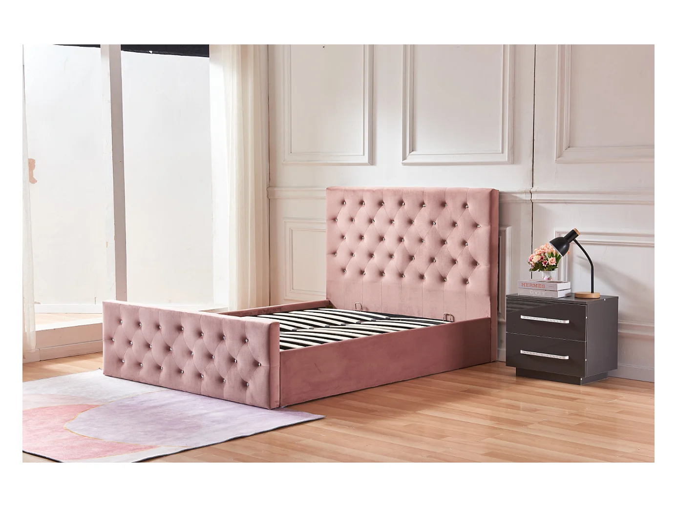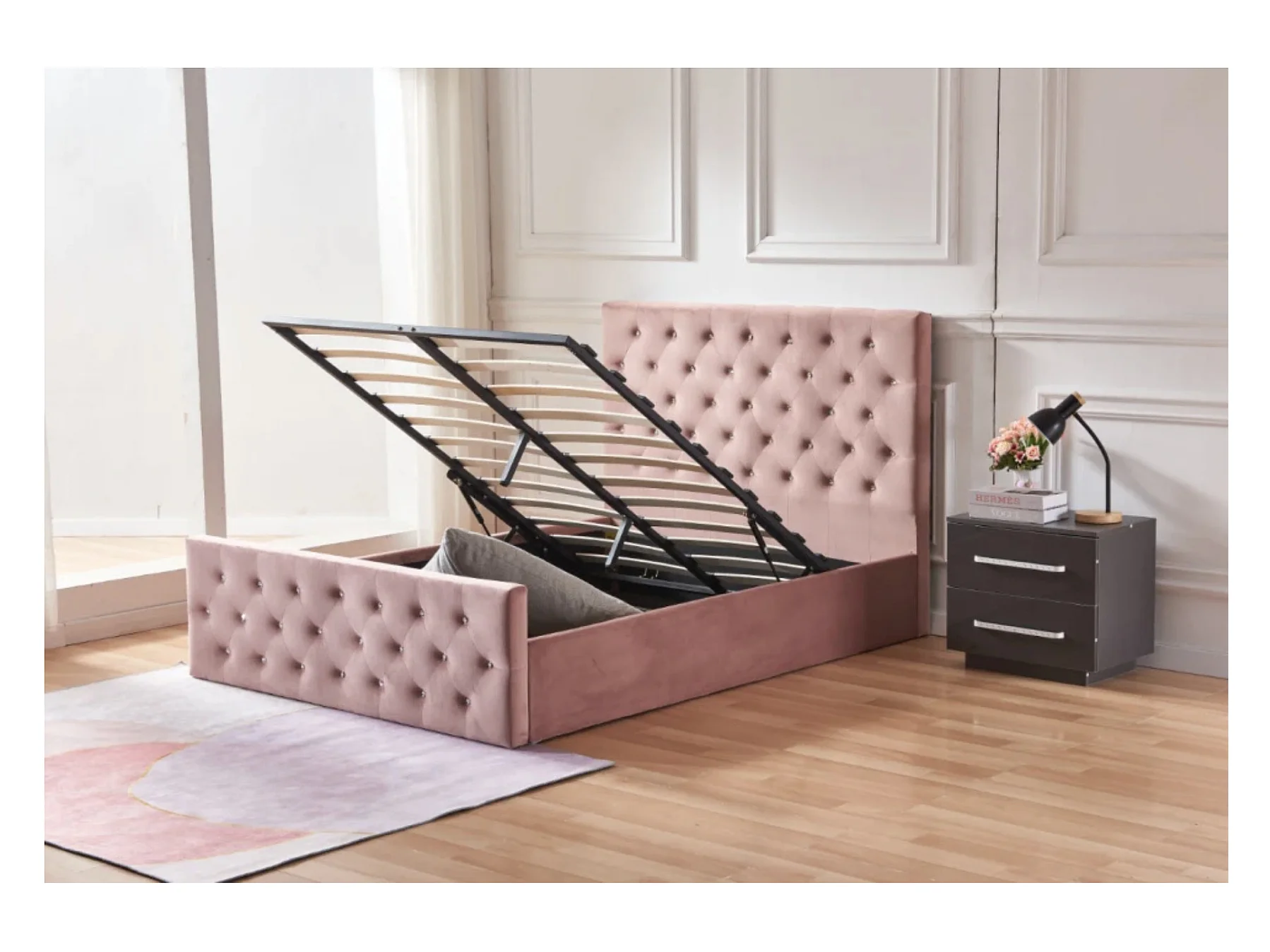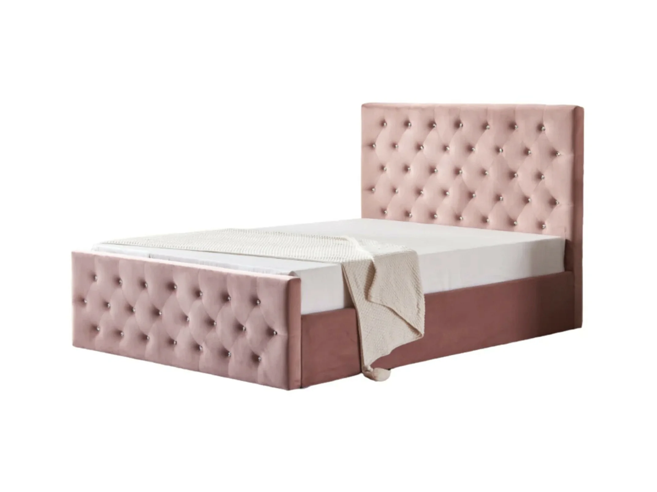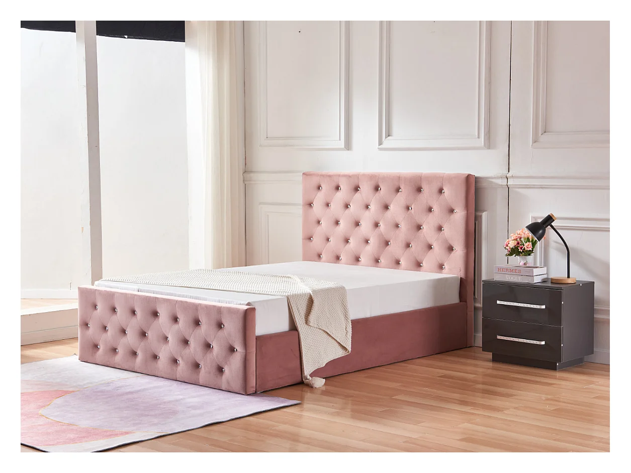 Lit coffre capitonné velours Korry-Couleur Rose clair-160x200