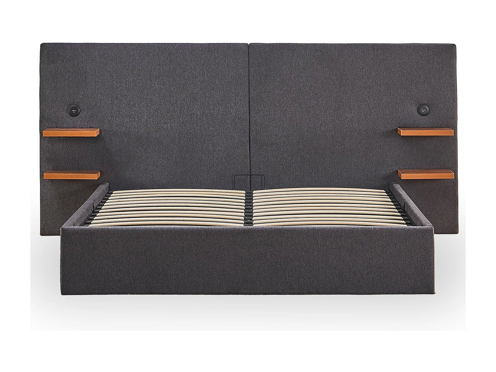 Lit-coffre complet avec tablettes et ports USB intégrés Lukas 160x200cm Tissu Gris