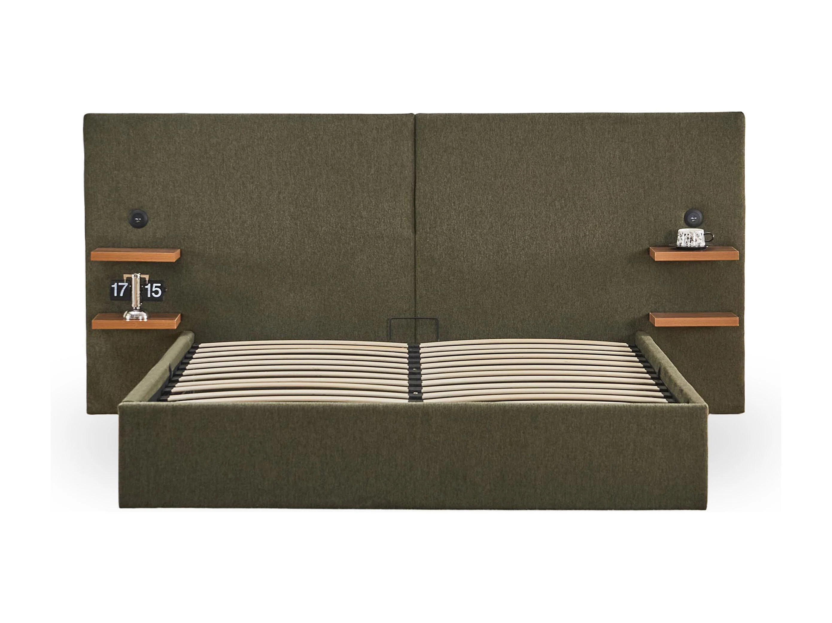 Lit-coffre complet avec tablettes et ports USB intégrés Lukas 160x200cm Tissu Vert