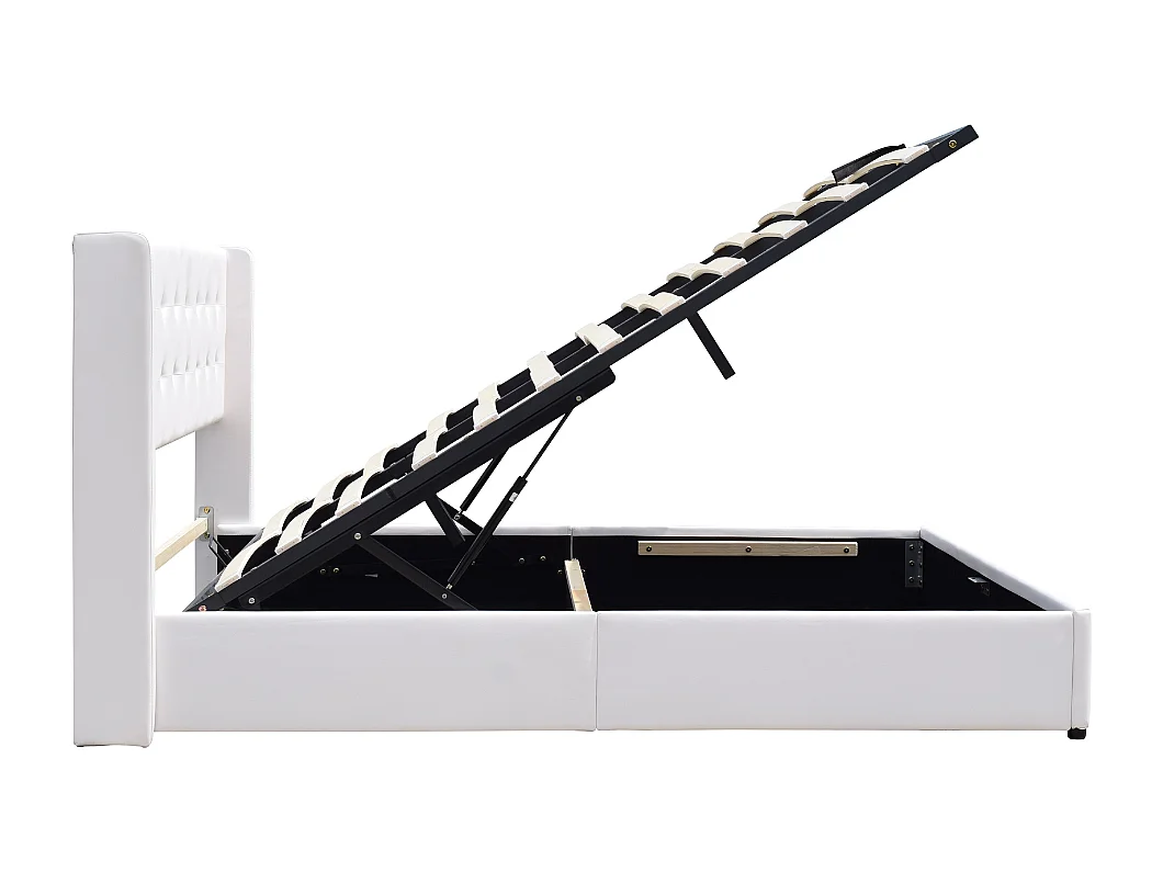 Lit coffre de rangement 140x200 cm avec tête de lit capitonnée - Montage facile - 14 lattes - revêtement PVC facile d'entretien