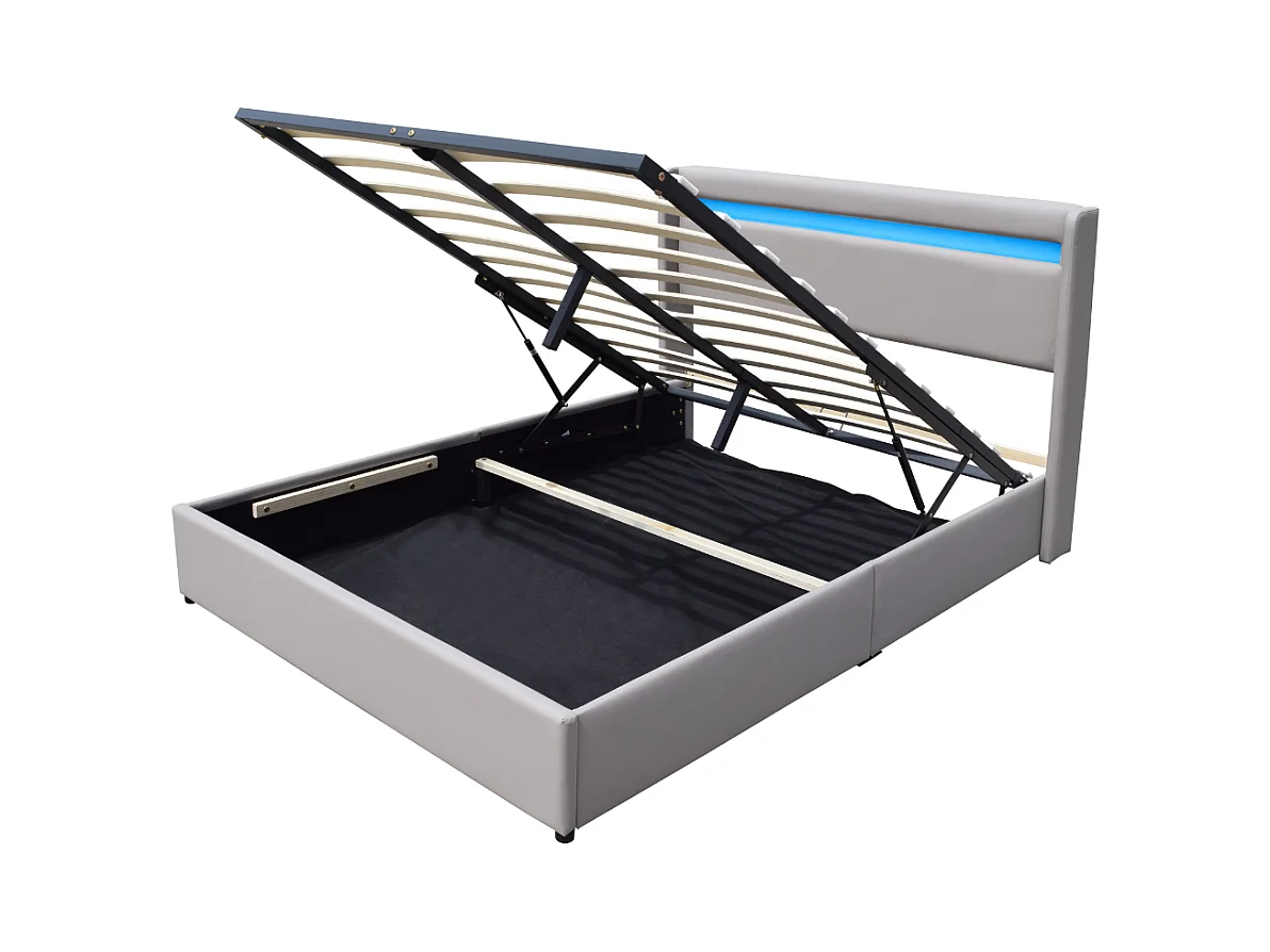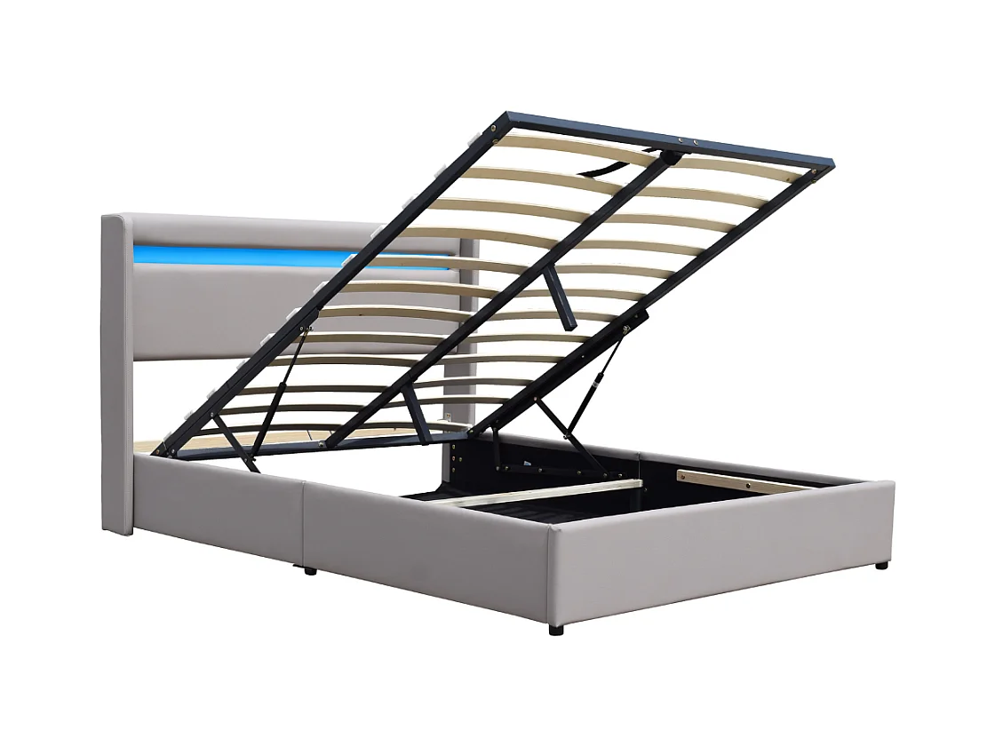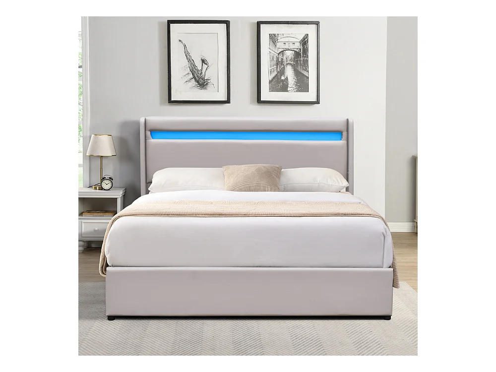 Lit Coffre Déhoussable 140x190 cm avec Tête de Lit LED - 12 Lattes - Montage Rapide et Facile - Revêtement PVC Simili Facile d'Entretien