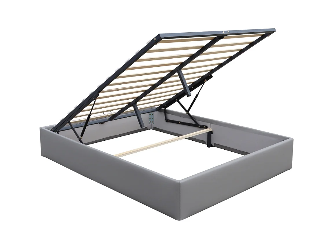 Lit Coffre dehoussable 180x200 cm Gris avec 14 Lattes - Montage Rapide et Entretien Facile en PVC Simili