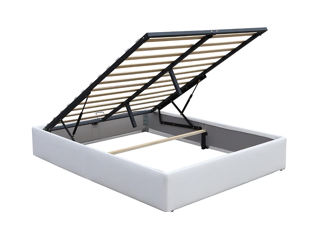 Lit Coffre Dehoussable Blanc 120x200 cm avec Pieds - 12 Lattes - Montage Rapide et Facile - Revêtement PVC Simili Facile d'Entretien