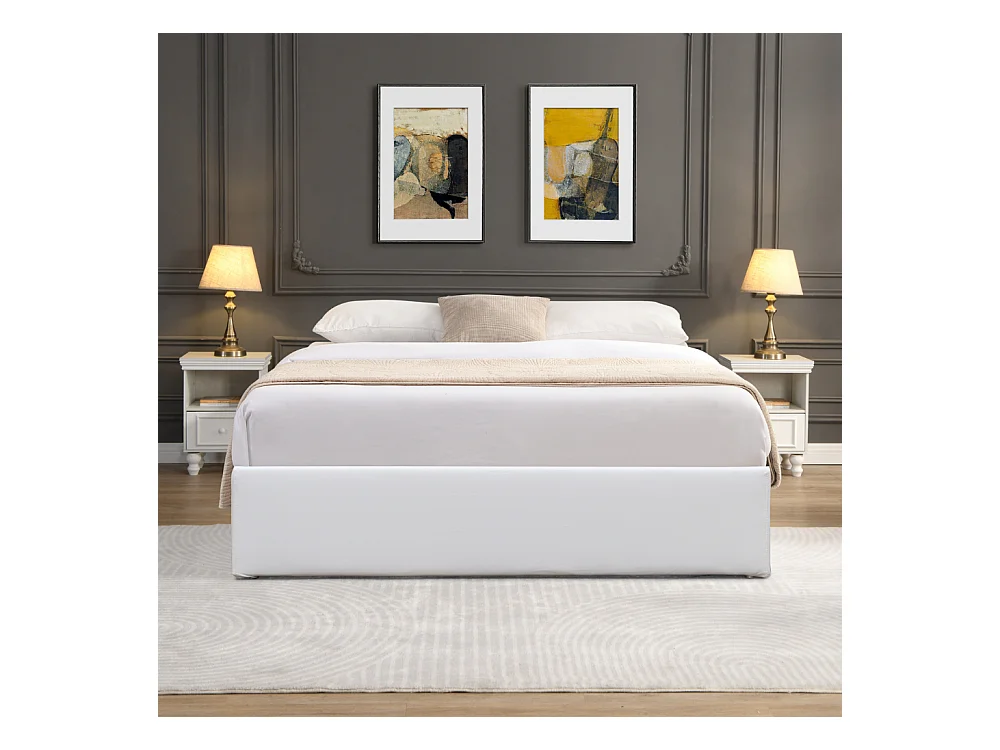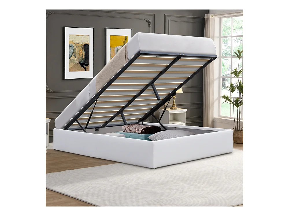 Lit Coffre Déhoussable Blanc 90x200 cm avec Pieds - 12 Lattes - Montage Rapide - Revêtement PVC Simili Facile d'Entretien