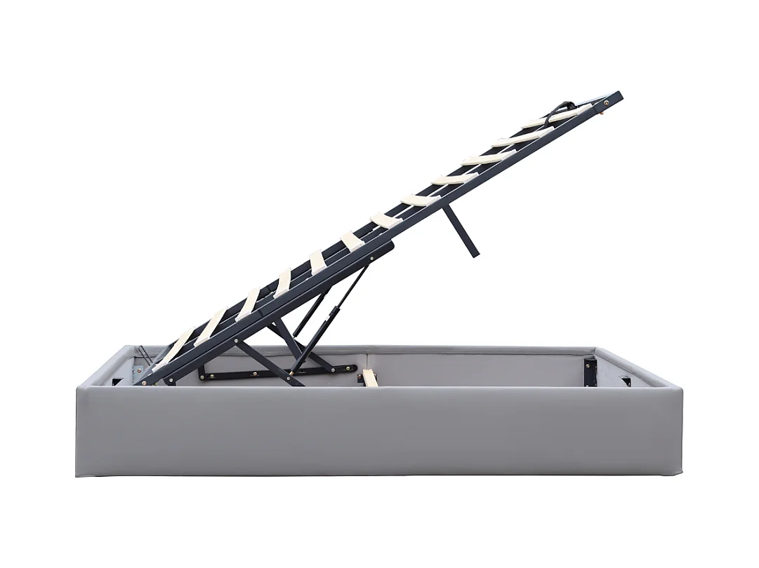 Lit Coffre dehoussable gris 90x190 cm avec Pieds - 12 Lattes - Montage Rapide - Revêtement PVC Simili Facile d'Entretien