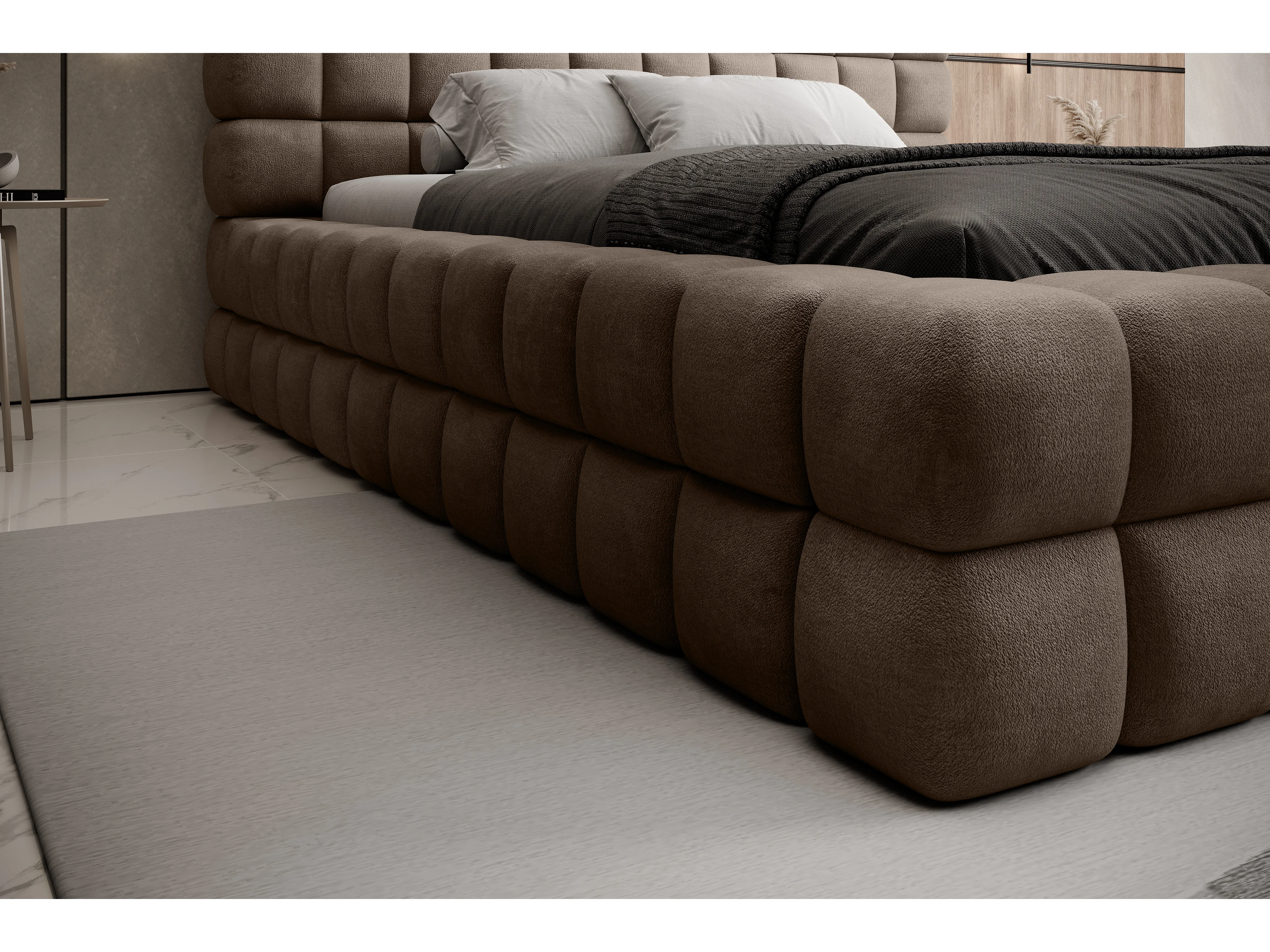 Lit coffre design avec capitonnage velours Kaizer-Couleur Marron noisette-140x200