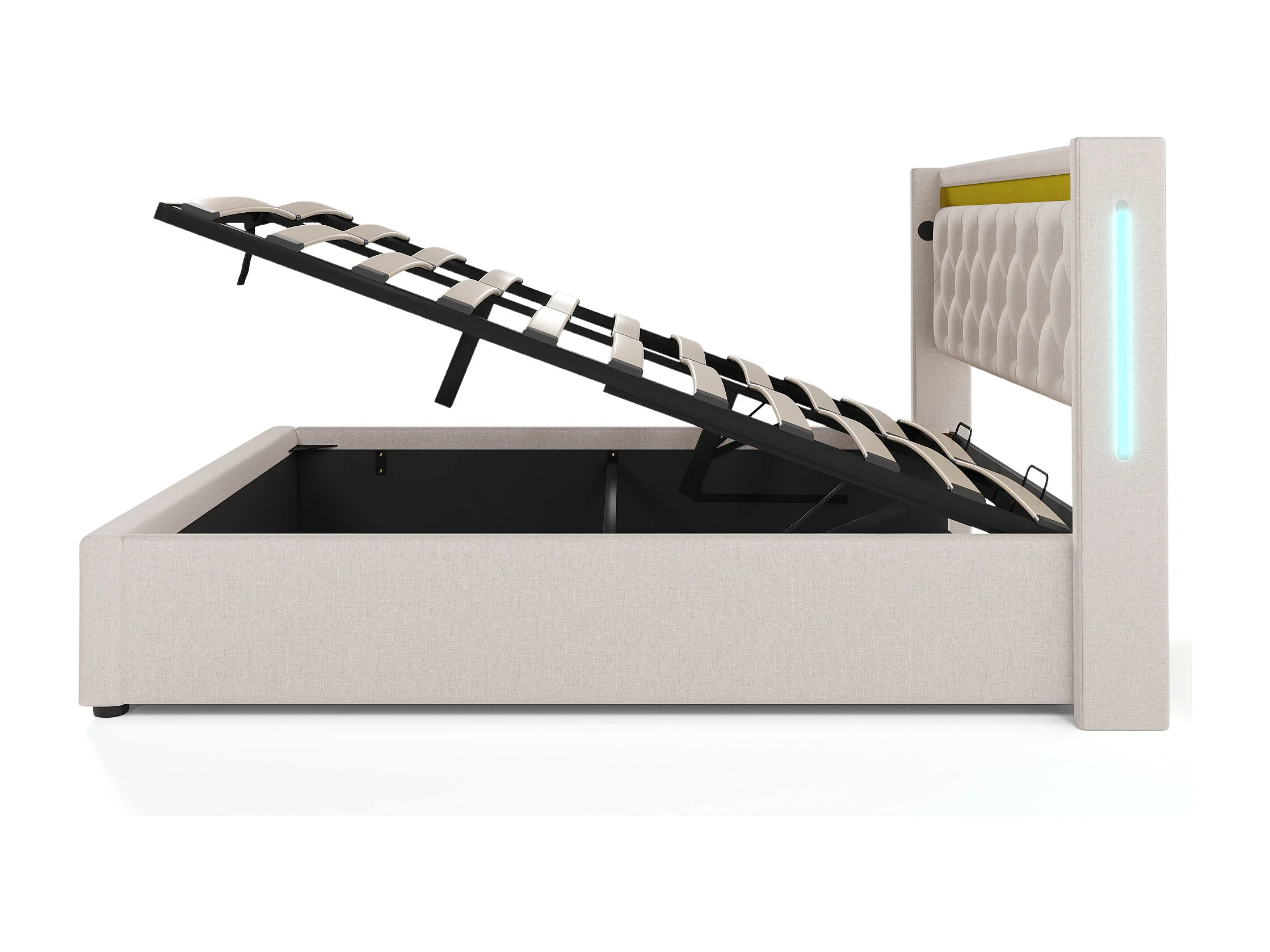 Lit coffre adulte 160x200 cm - Tête de lit LED et charge USB-C - Coton gris (sans matelas)