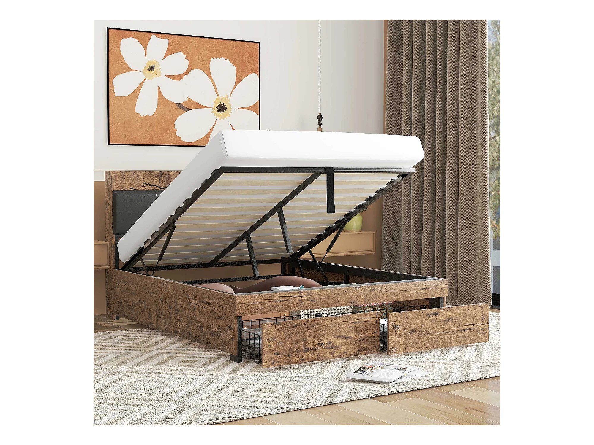 Lit coffre adulte hydraulique 140x200 cm - structure métal et bois, noir(sans matelas)