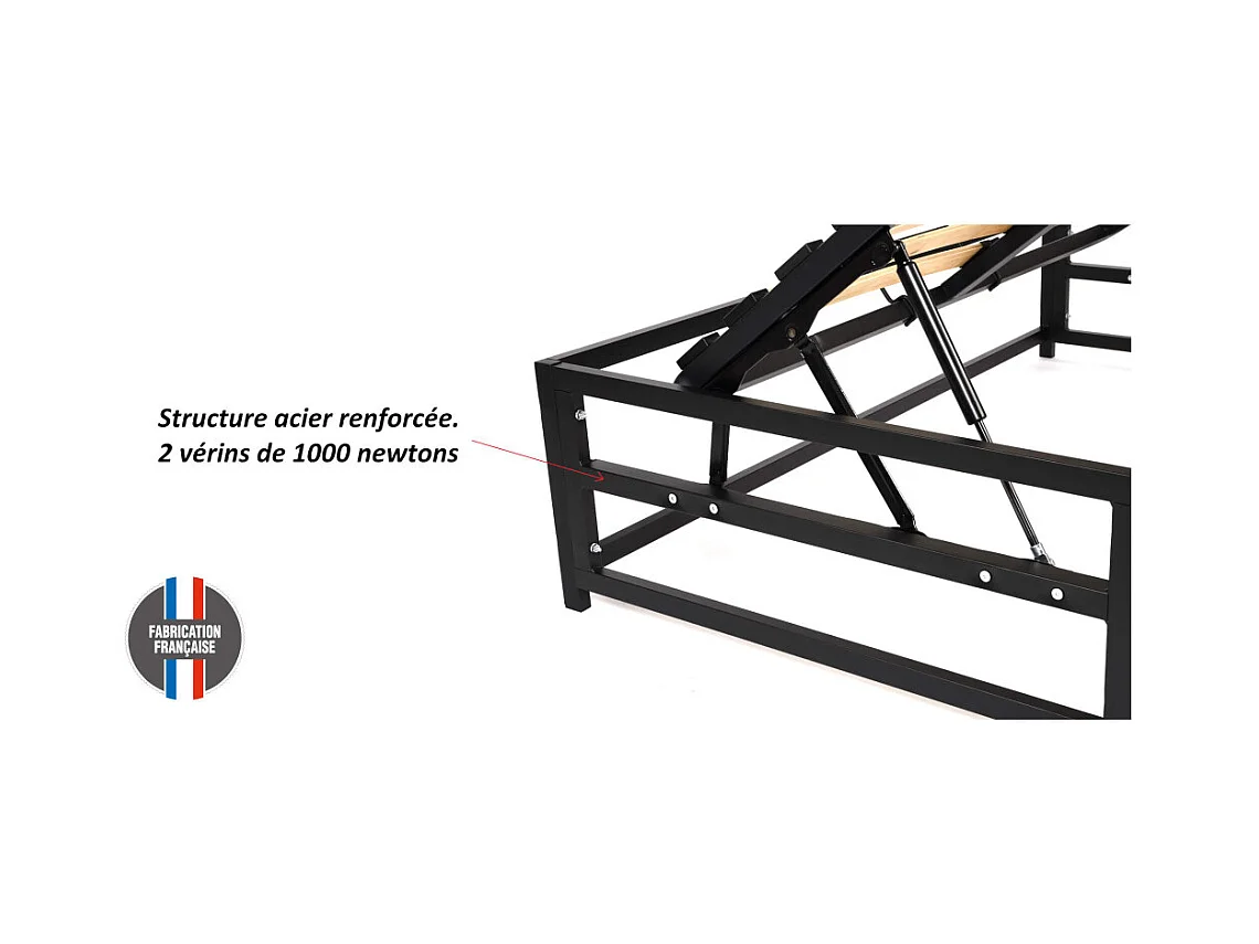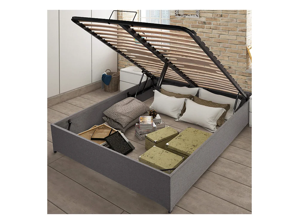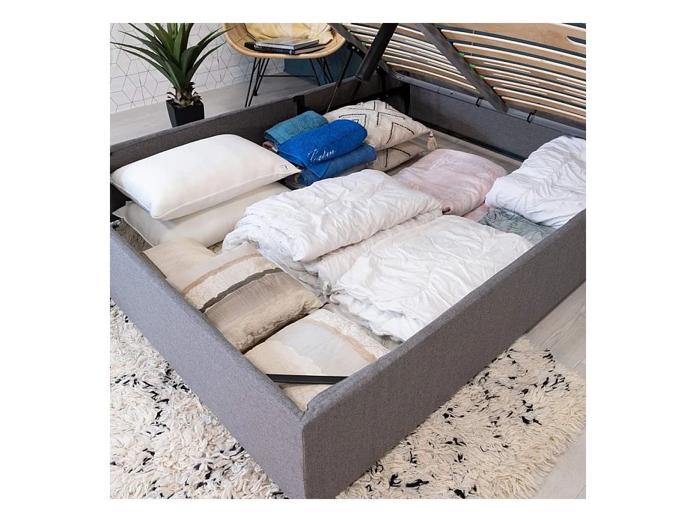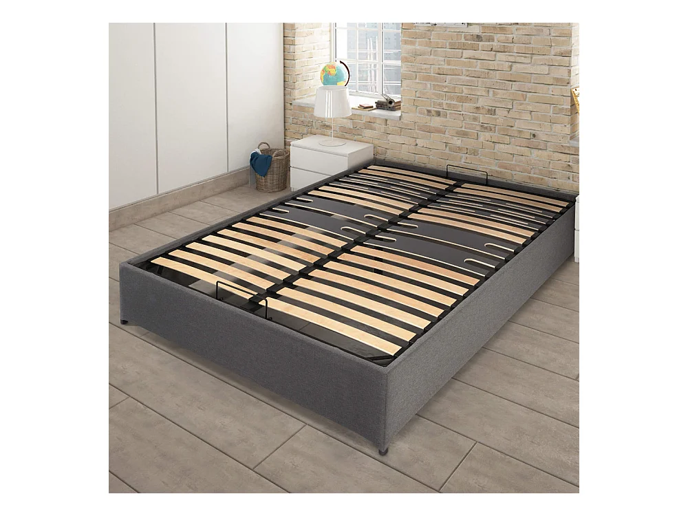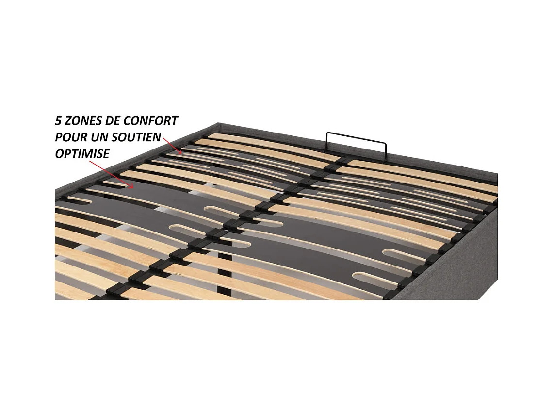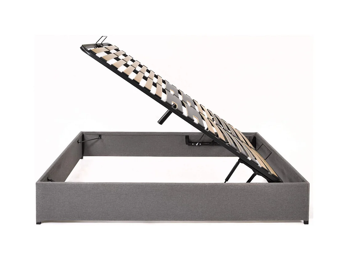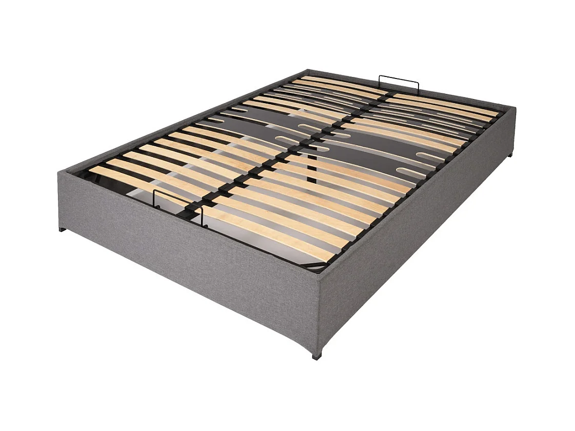 Lit coffre Savio - 160x200 - Tissu déco gris clair - 36 lattes bois - Gain de place