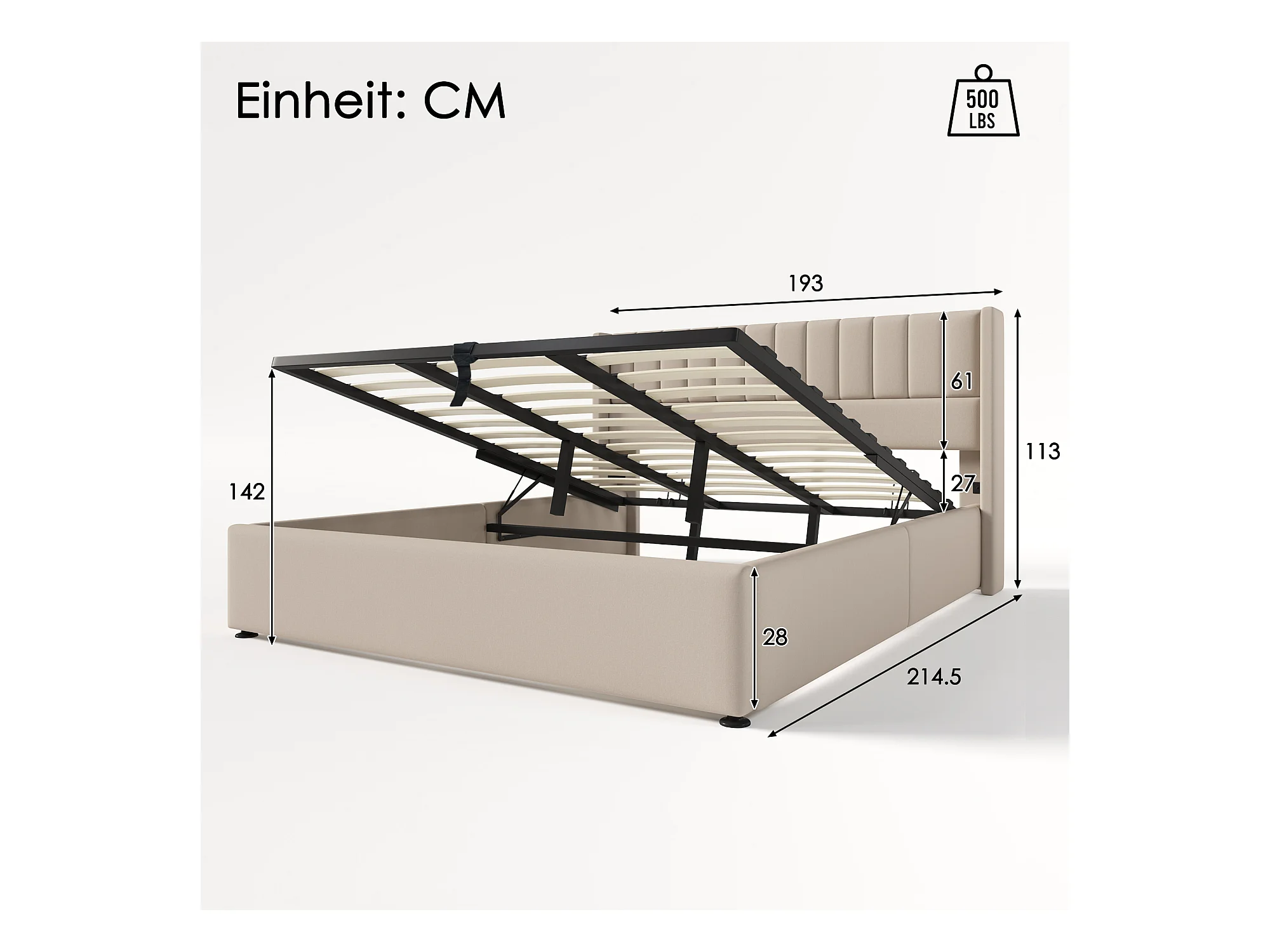 Lit coffre hydraulique 180x200 cm, beige, avec tête de lit rembourrée et rangement spacieux