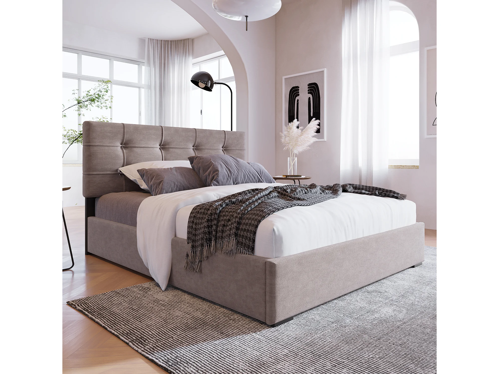Lit coffre hydraulique canapé convertible - avec rangement - gris - 140x200 cm - Sweiko