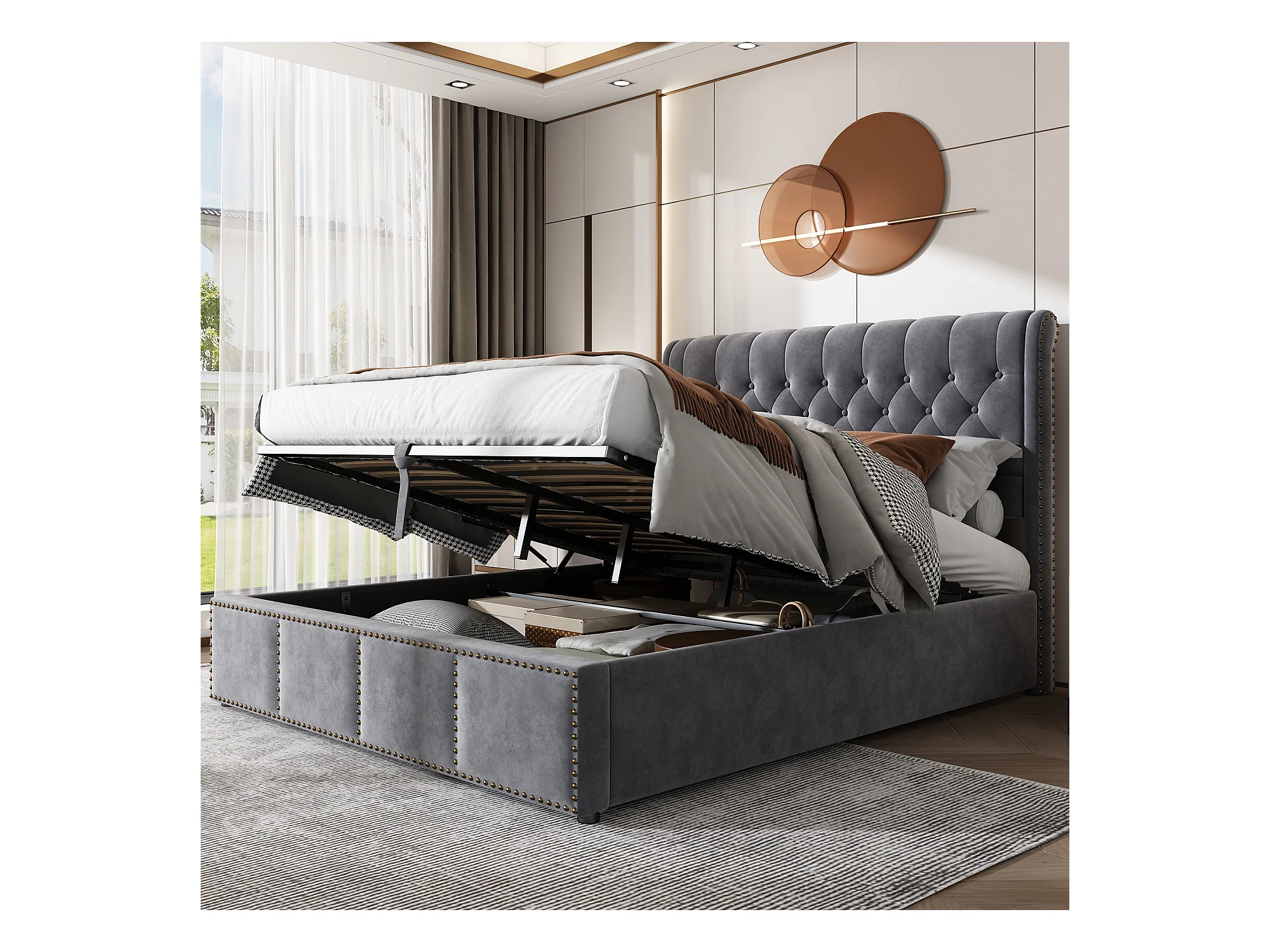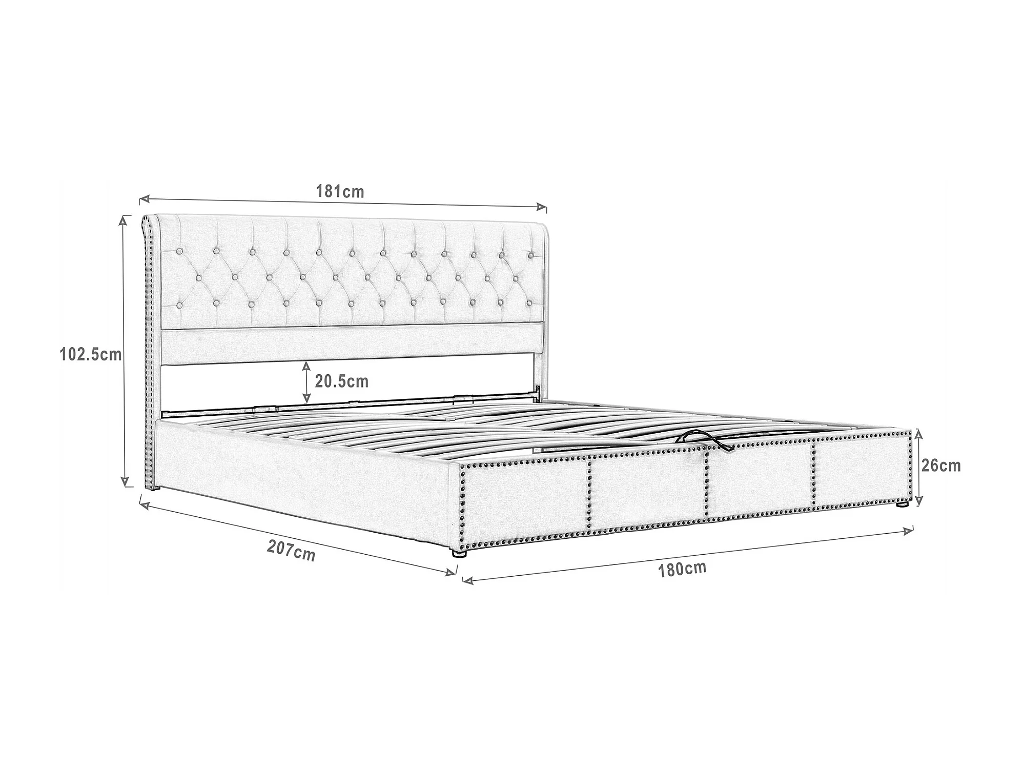 Lit coffre Lit 180 x 200 cm Lit rembourré - gris - Sweiko
