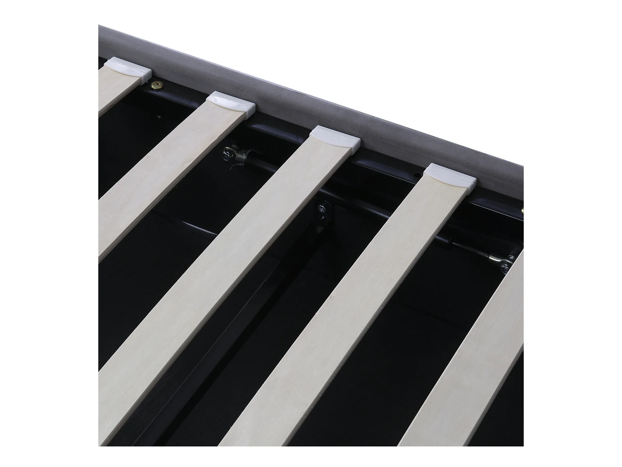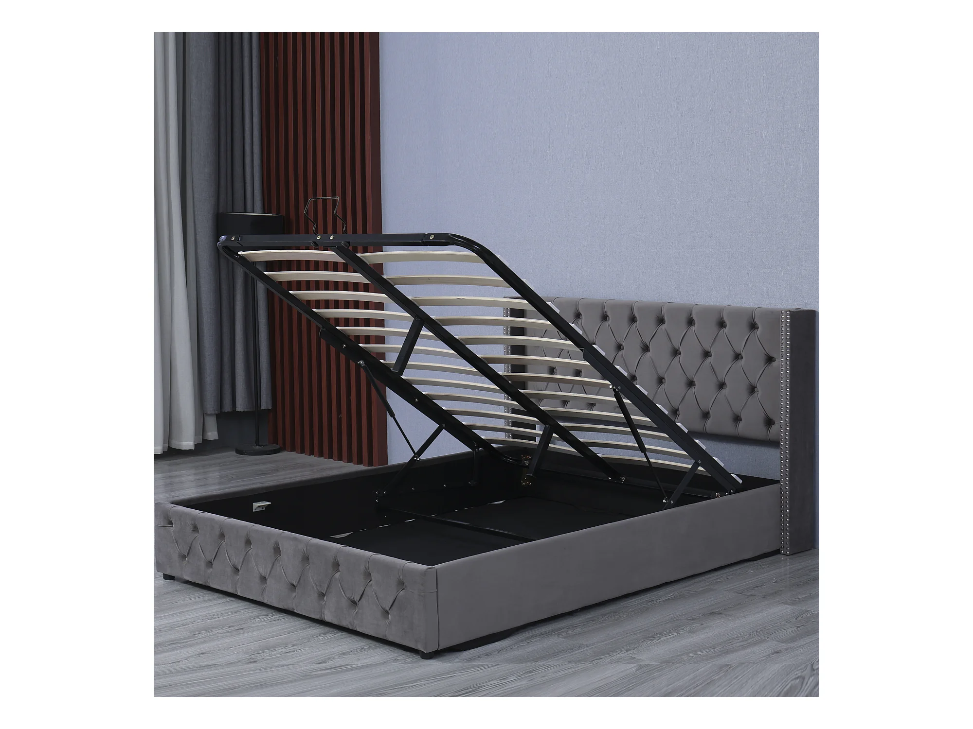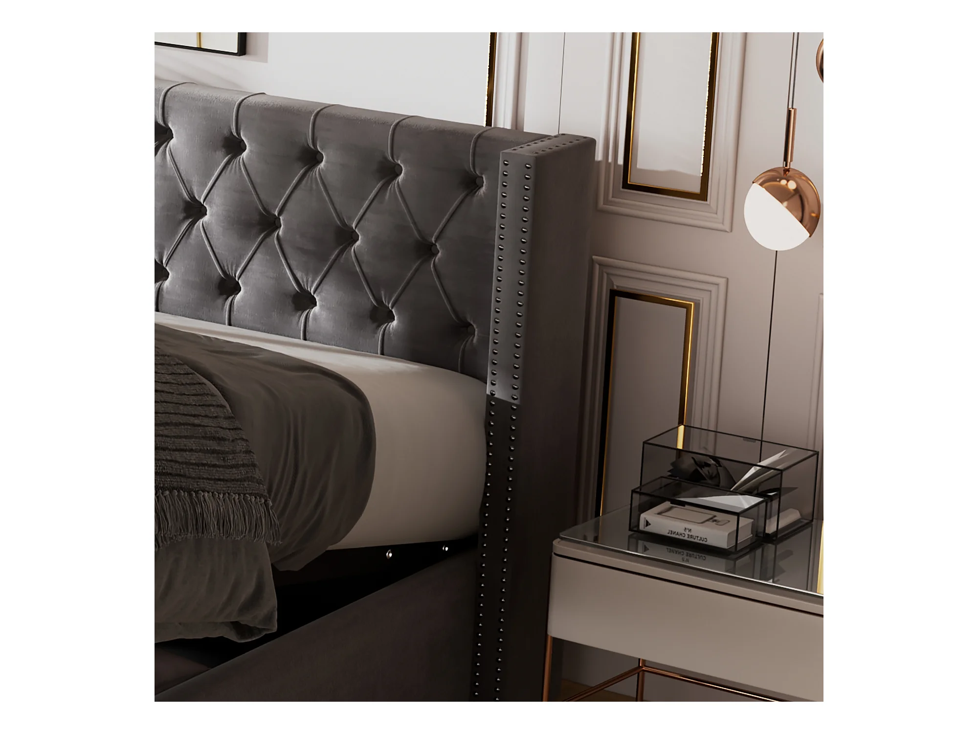 Lit coffre 140x190 cm - Velours gris - Lit adulte avec tête de lit capitonnée - Sans matelas