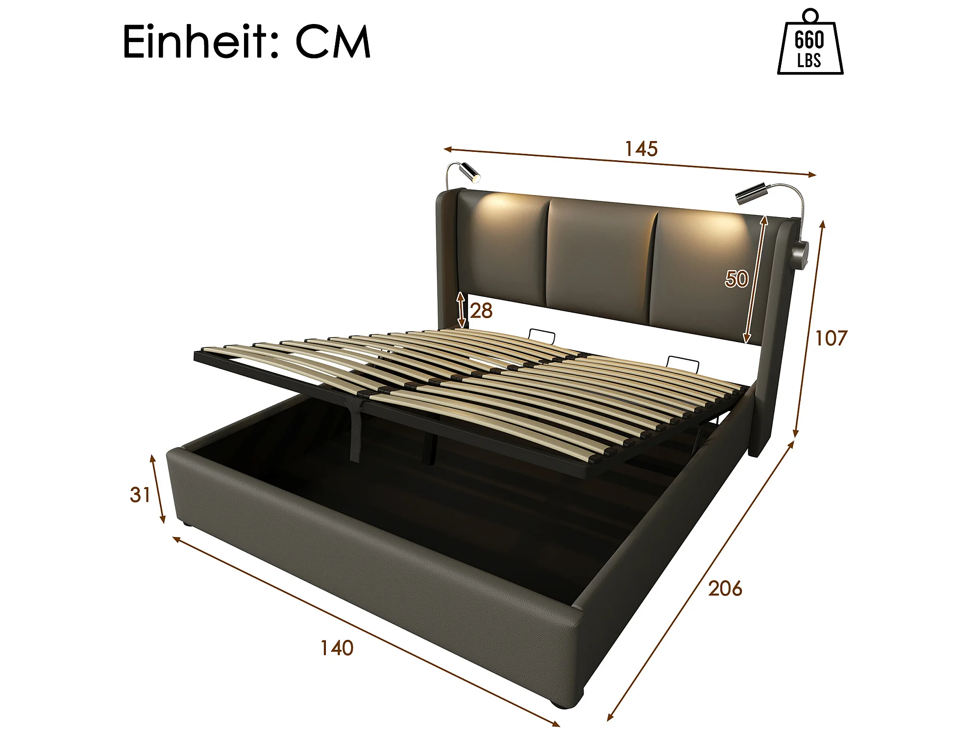 Lit coffre lit de rangement tiroirs cadre de - PU 140x200 cm Gris foncé - Sweiko