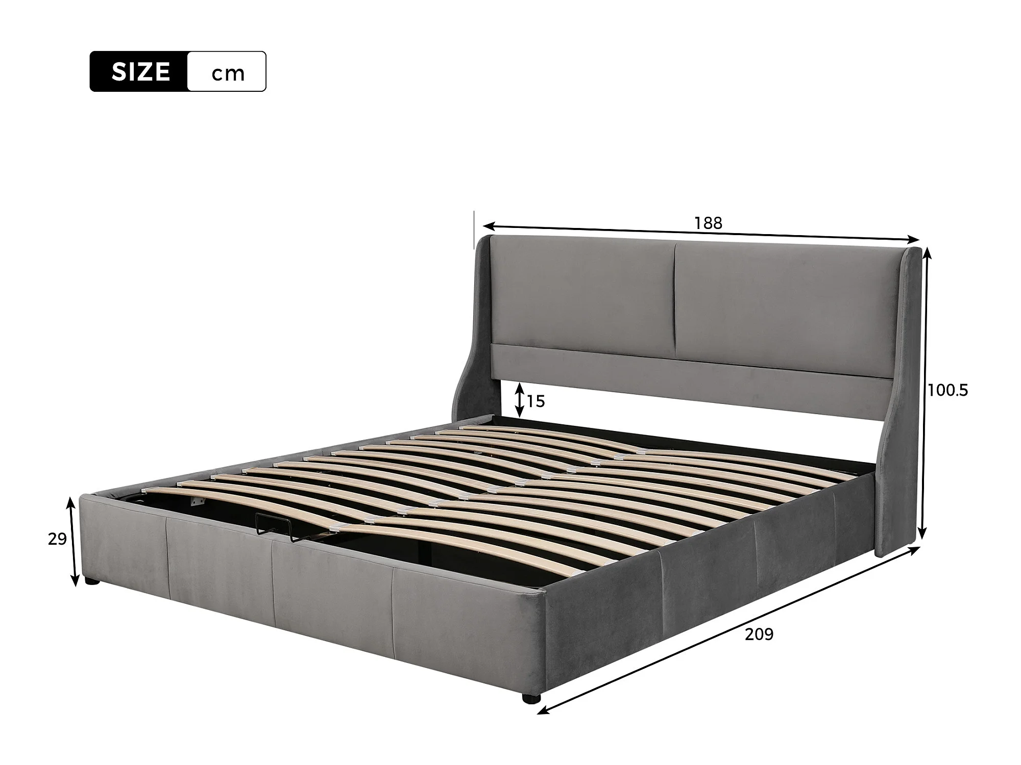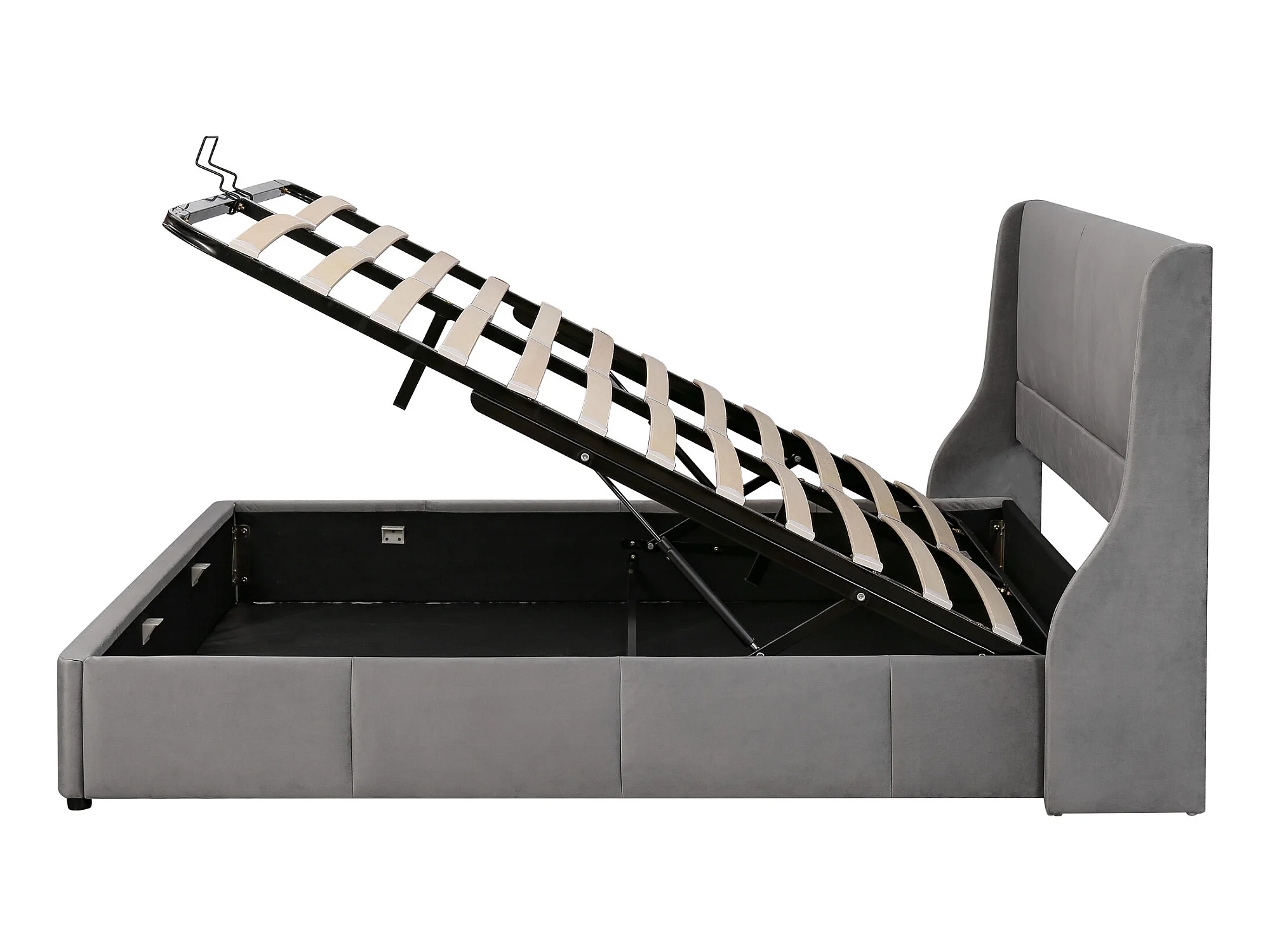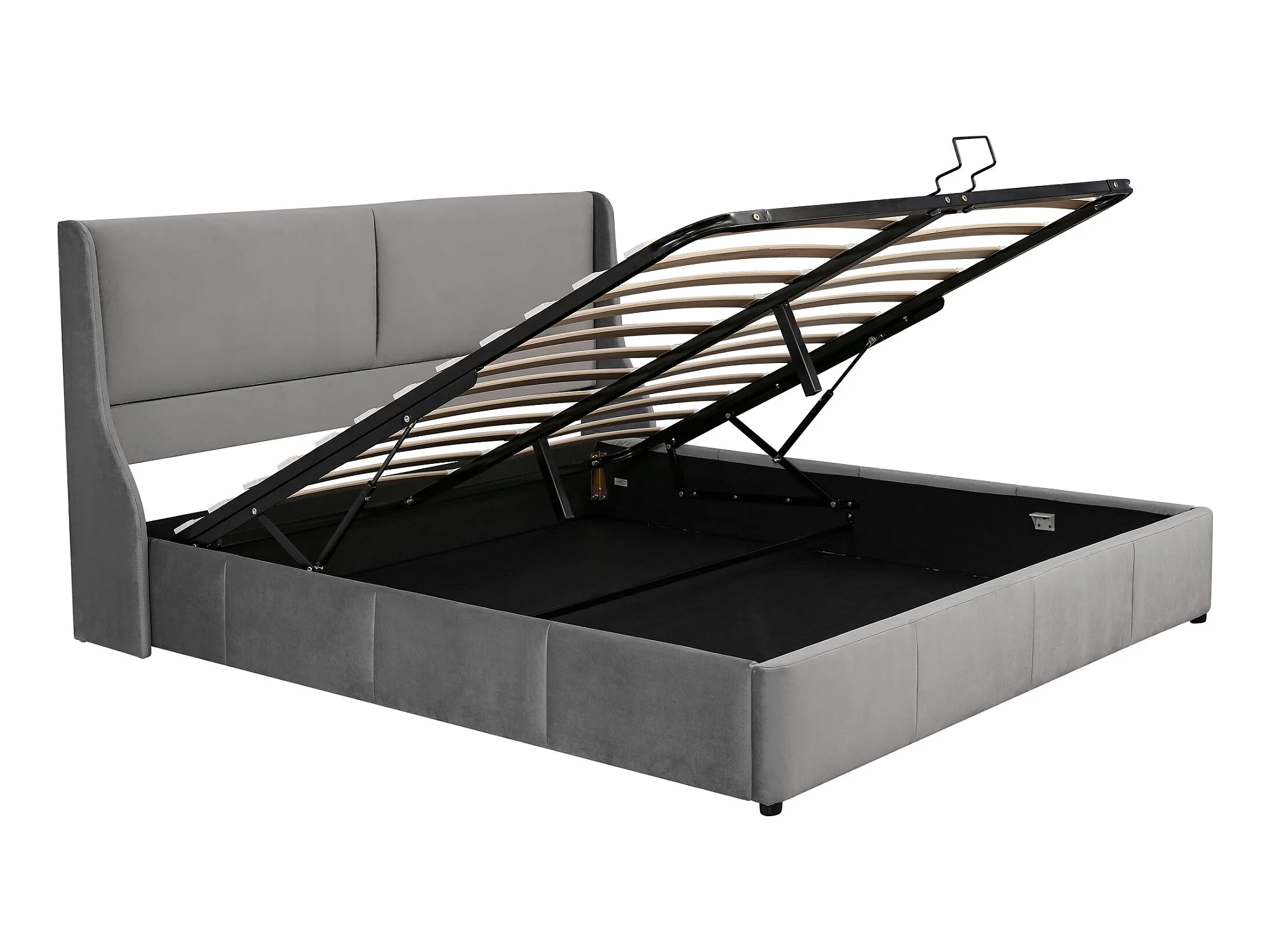Lit coffre lit double lit fonctionnel hydraulique 180 x 200 - gris - Sweiko