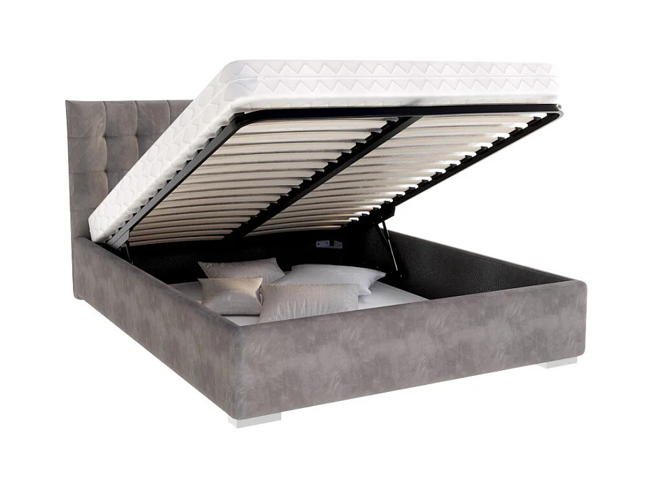 Lit coffre LUCERNO 160 x 200 cm avec sommier à lattes relevable Gris Foncé