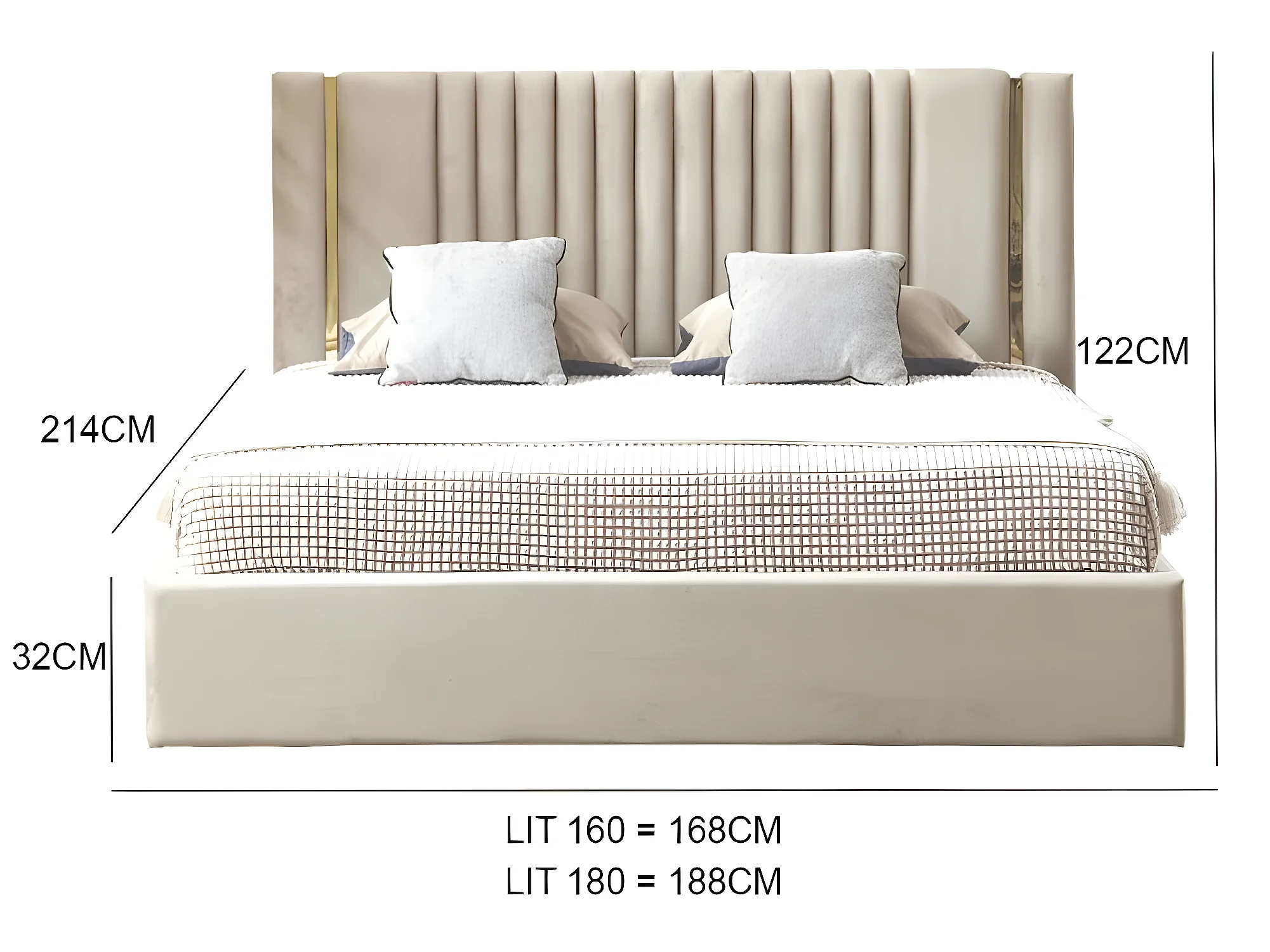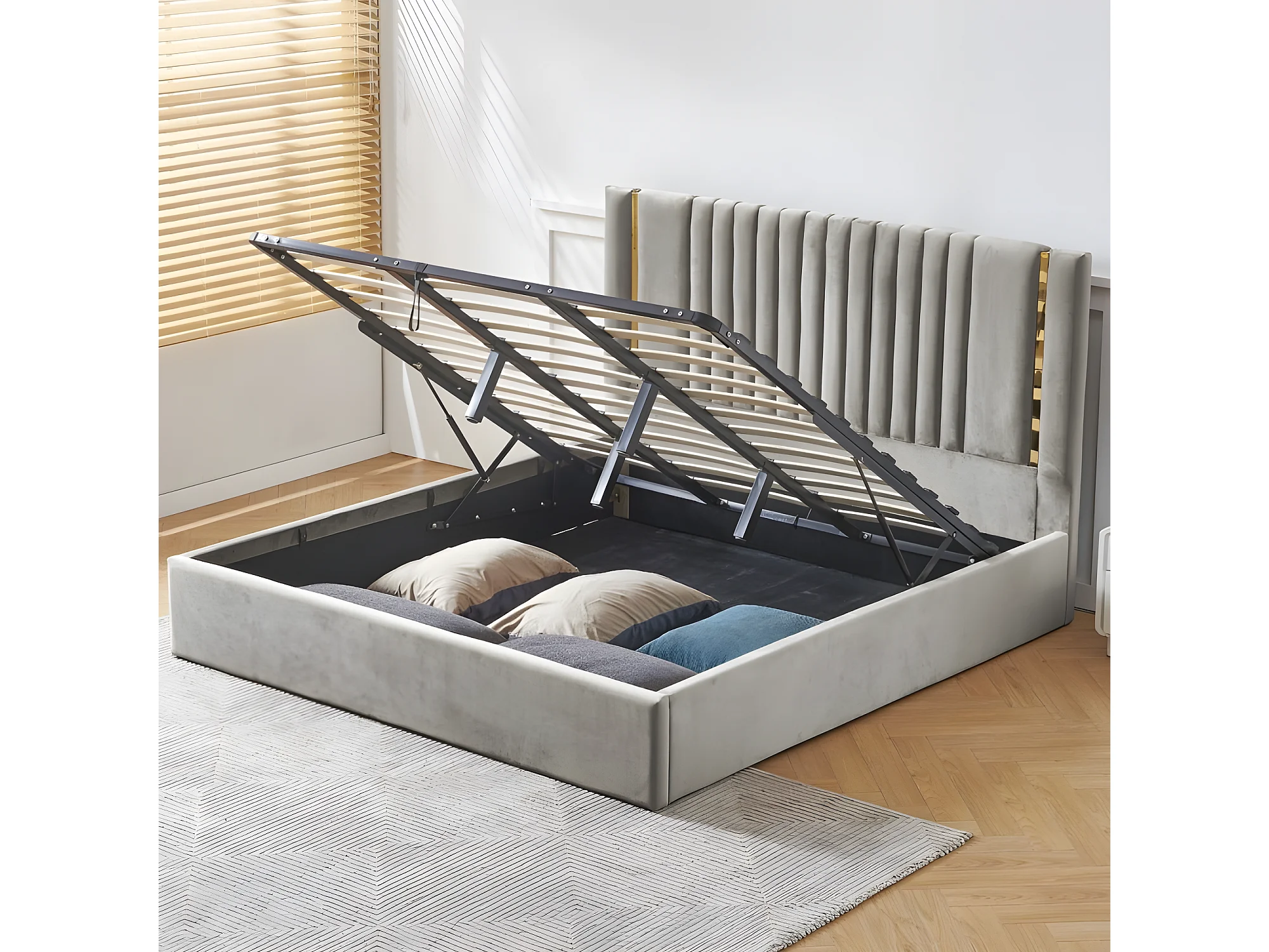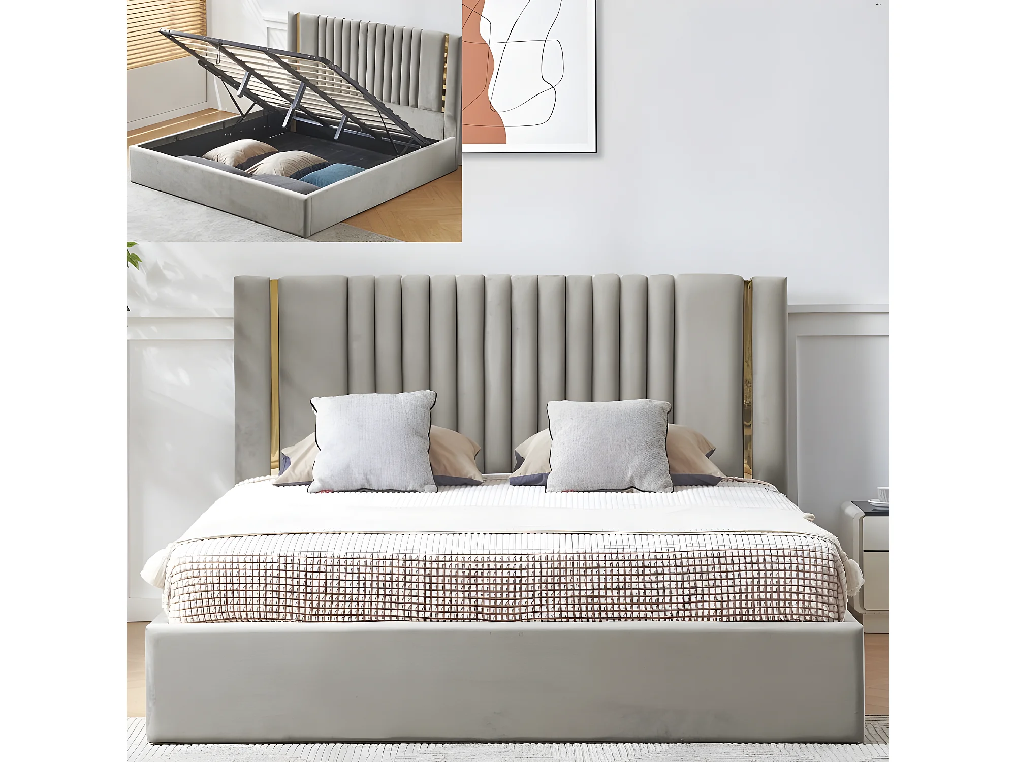 Lit Coffre Métal Or Et Velours Kaufman - Couleurs - Velours Gris, Tailles - 180x200