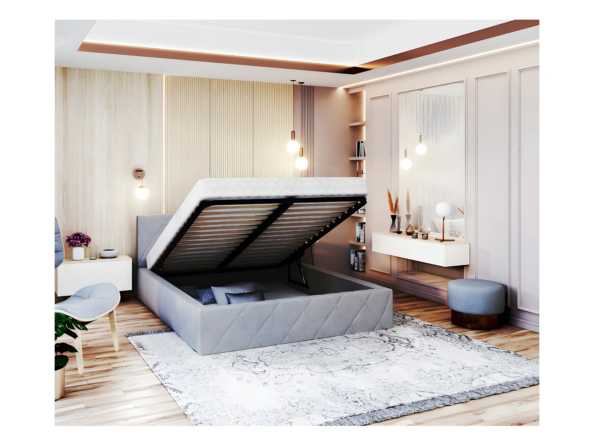 Lit coffre Oslo 140 x 190 cm avec sommier à lattes relevable Gris Clair