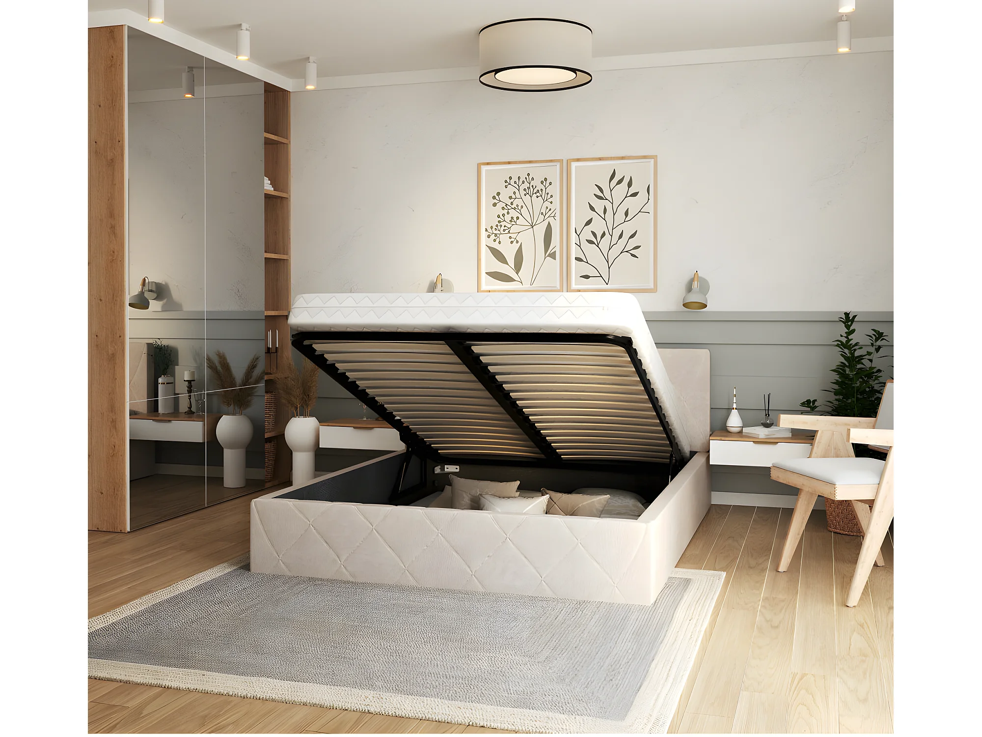 Lit coffre Oslo 160 x 200 cm avec sommier à lattes relevable Beige
