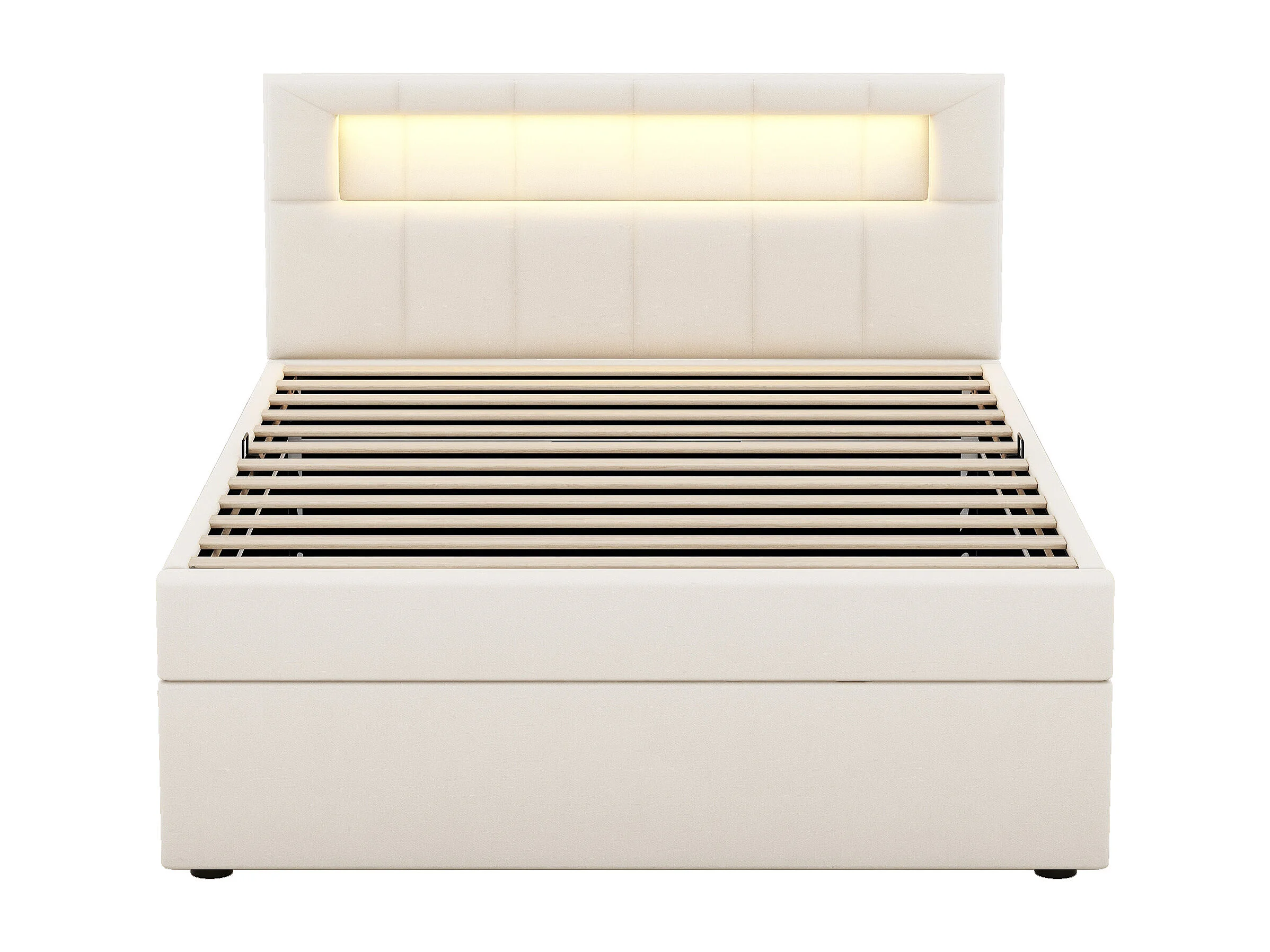 Lit coffre plat 90x200 cm, avec éclairage d'ambiance, ouverture unilatérale, en velours beige(sans matelas)
