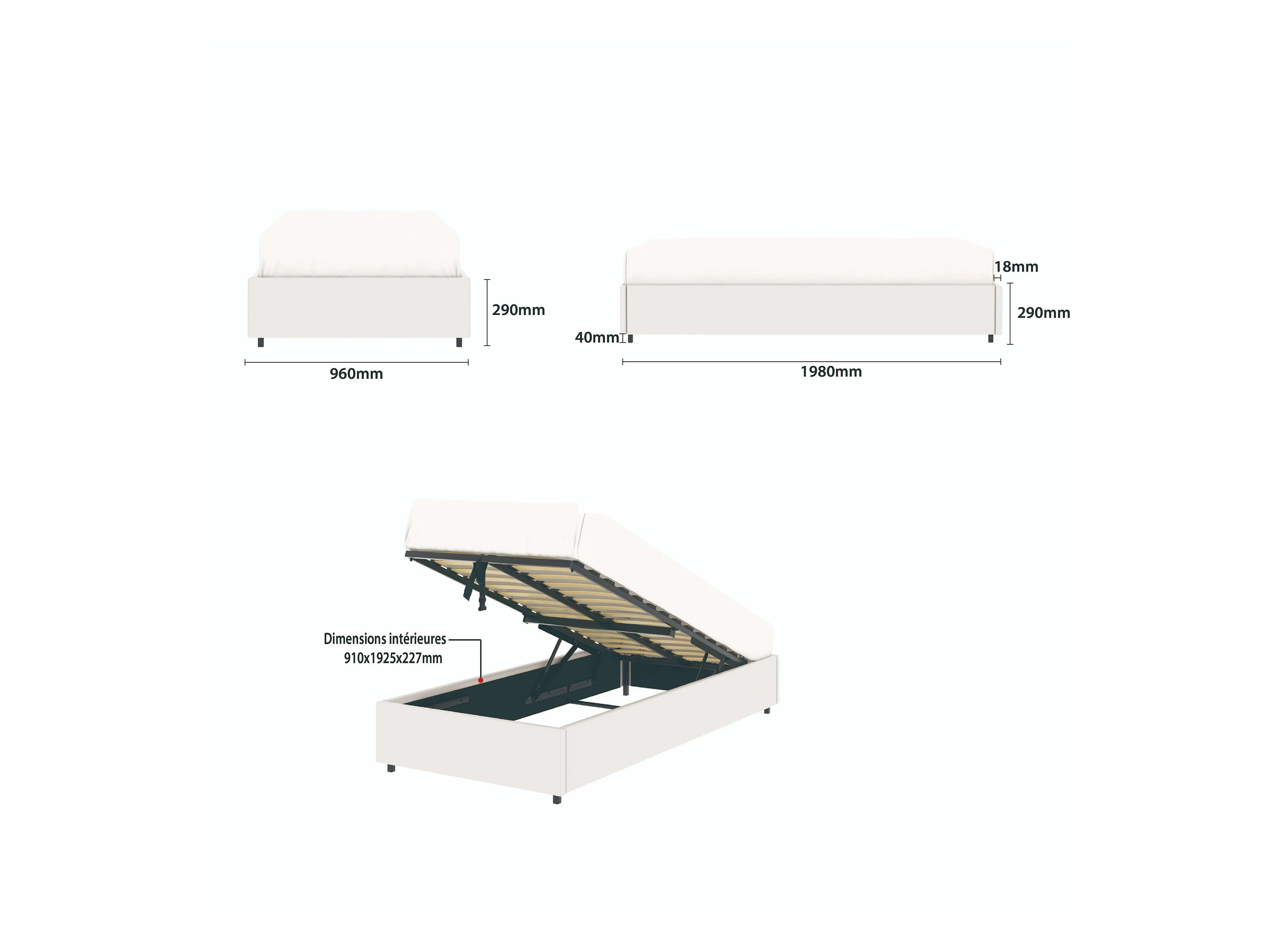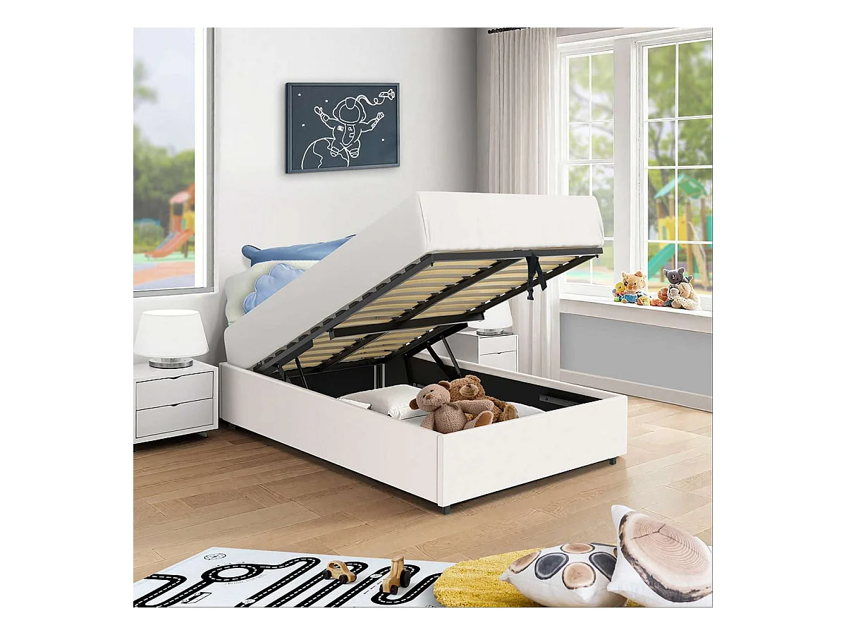 Lit coffre plateforme – couchage 90x190 cm - simili cuir (PU) blanc - sommier inclus - LANCE