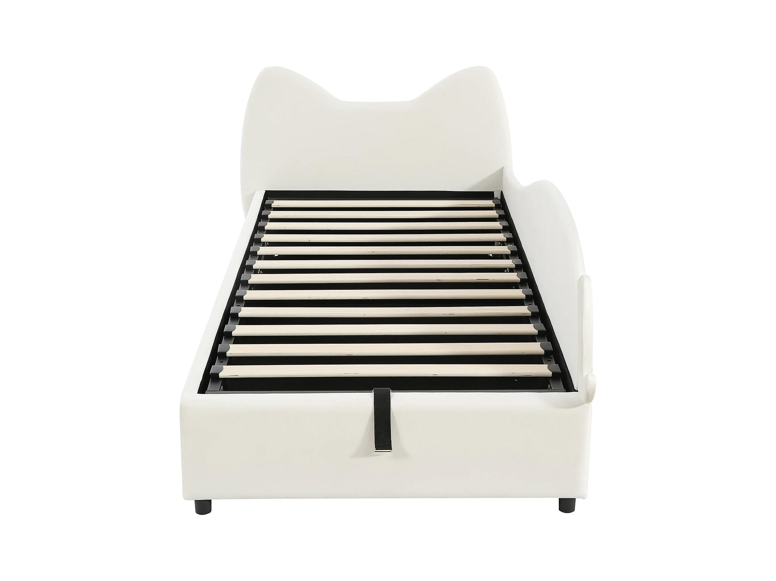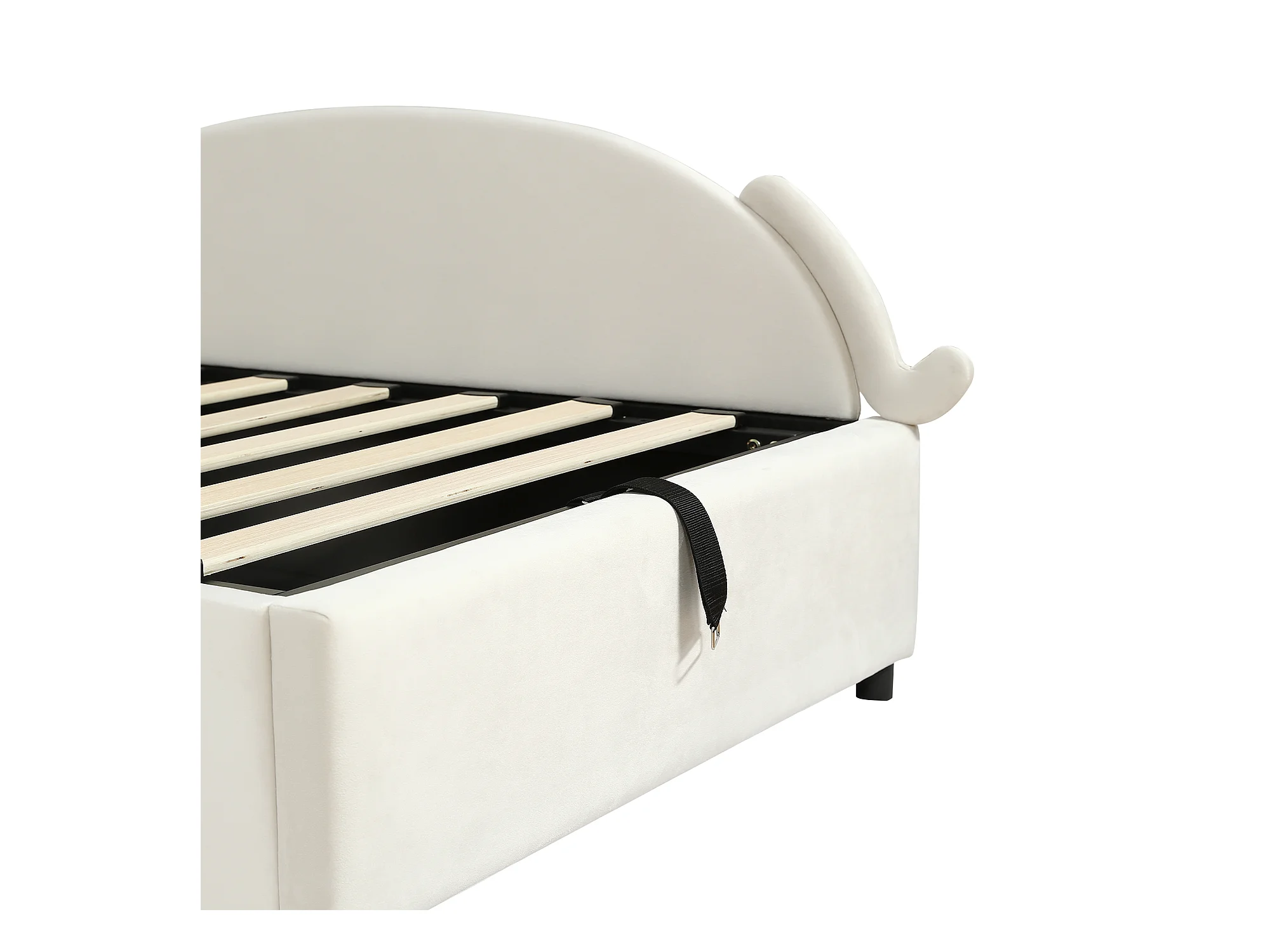Lit coffre pour enfants 90x200cm - tête de lit en forme de chat - clôture de droite - avec sommier à lattes - velours + contreplaqué - Beige