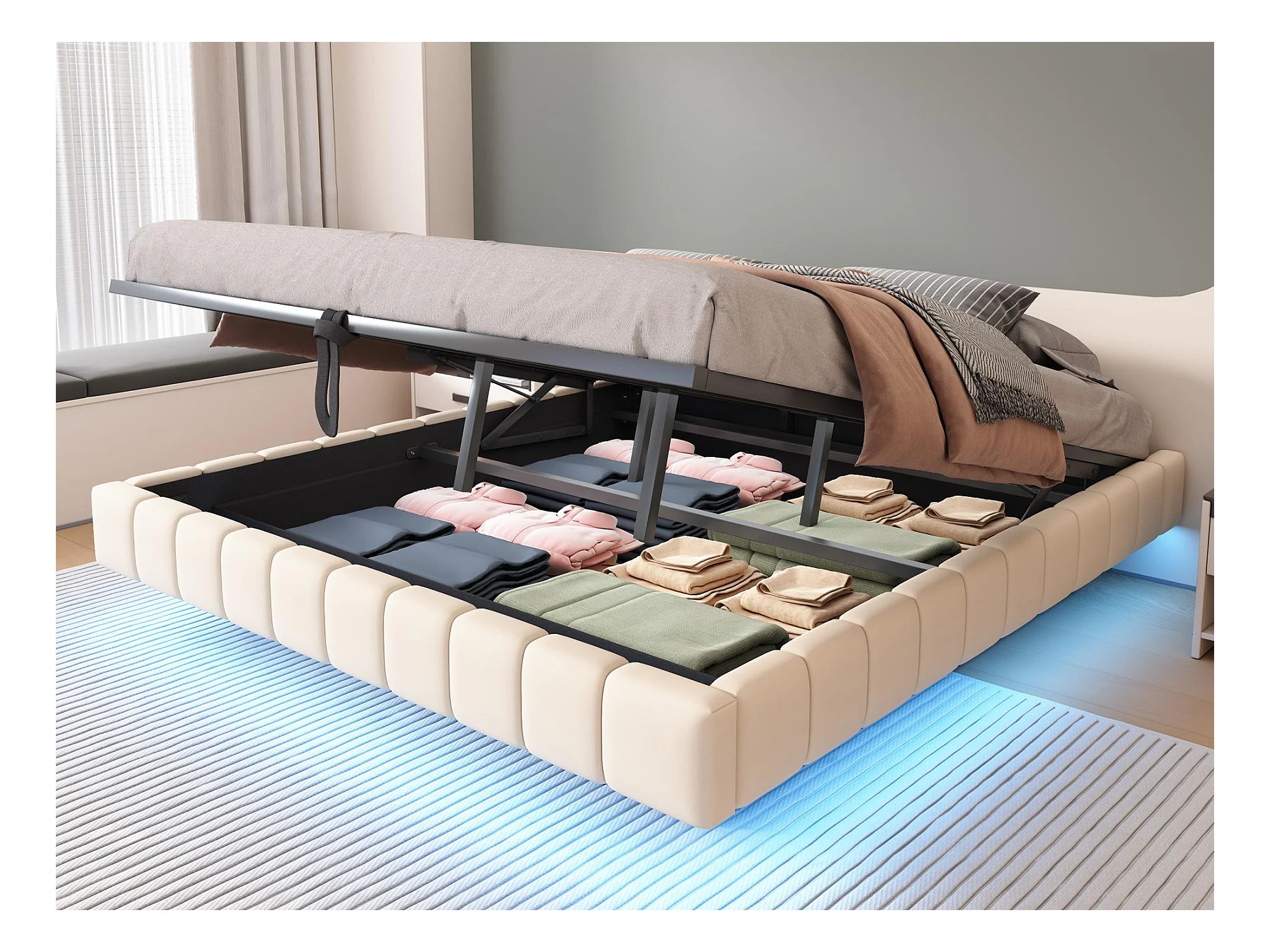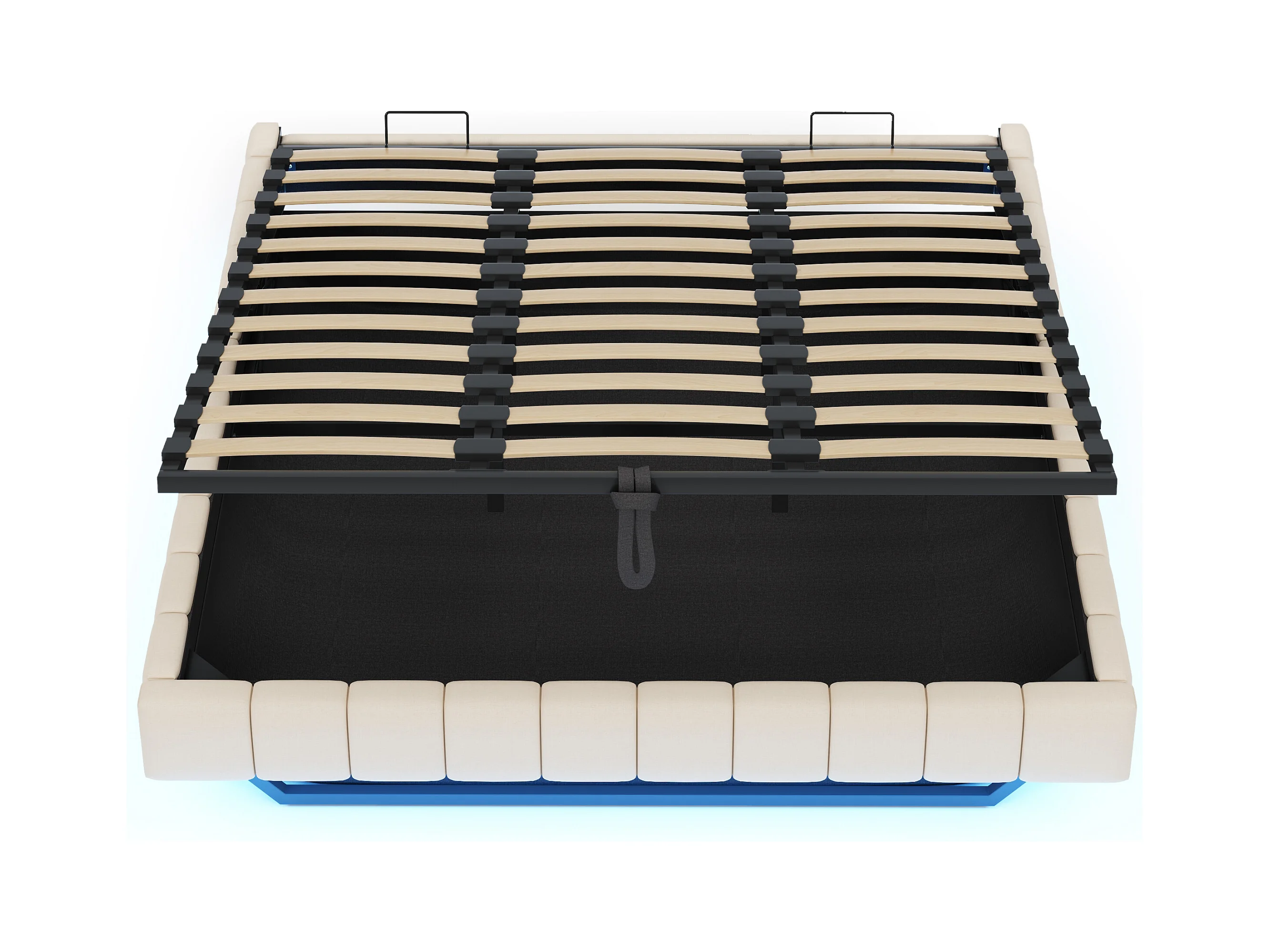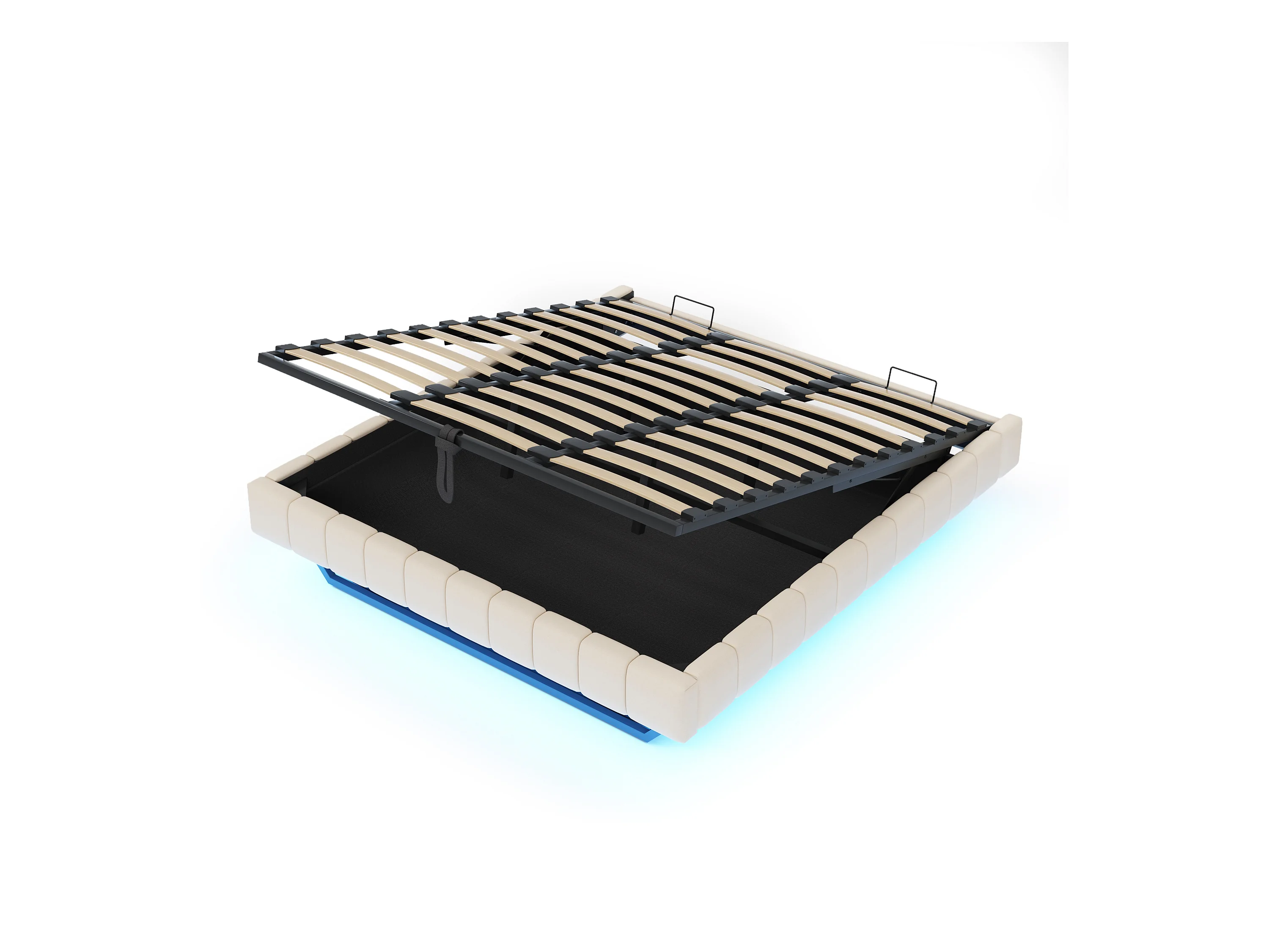 Lit coffre rembourré 180x200 cm - sans tête de lit - avec éclairage LED - lin - beige (matelas non inclus)
