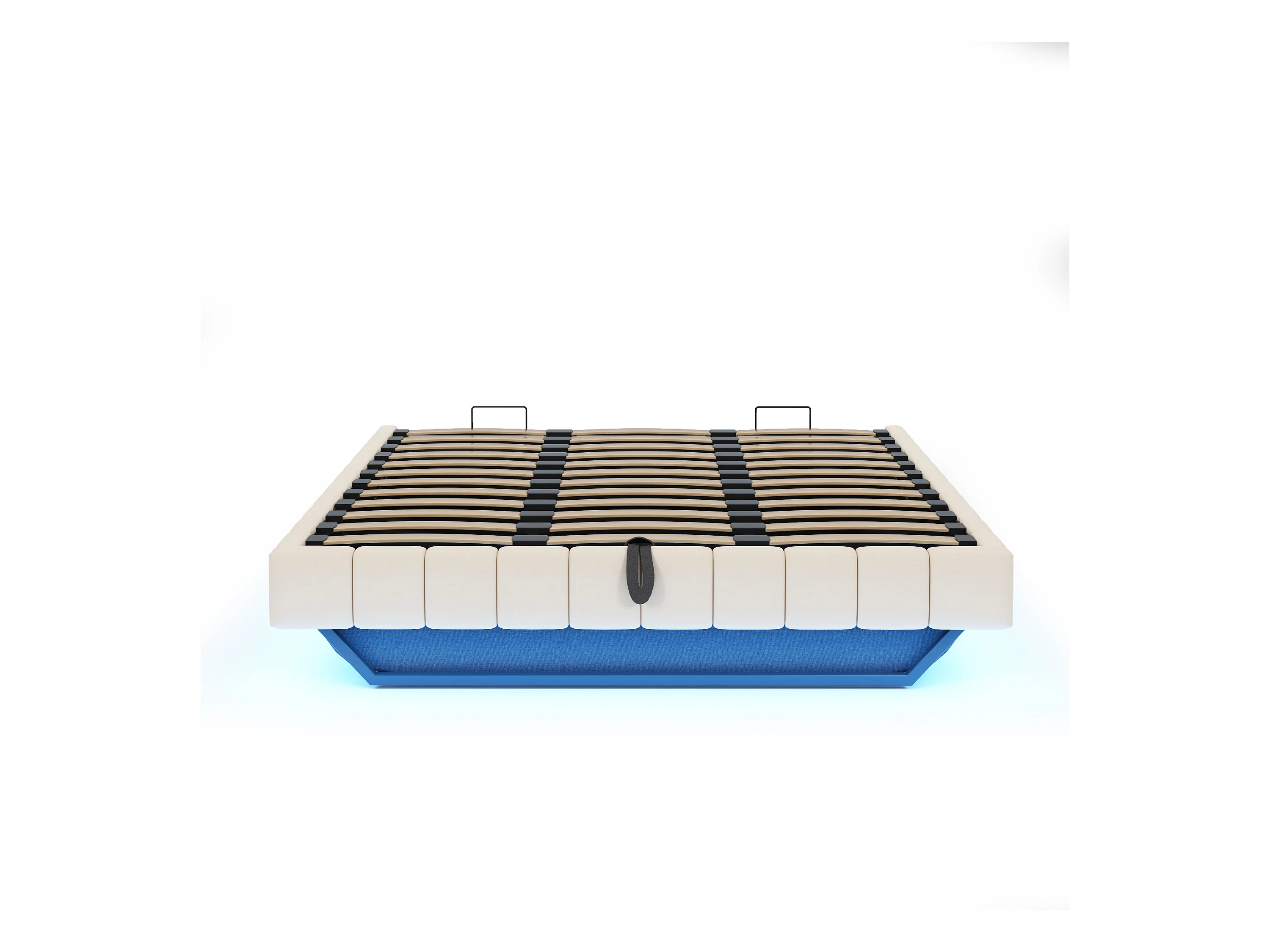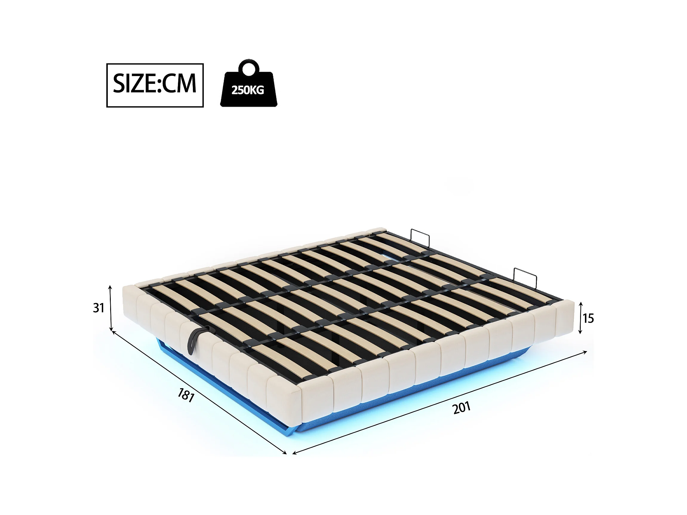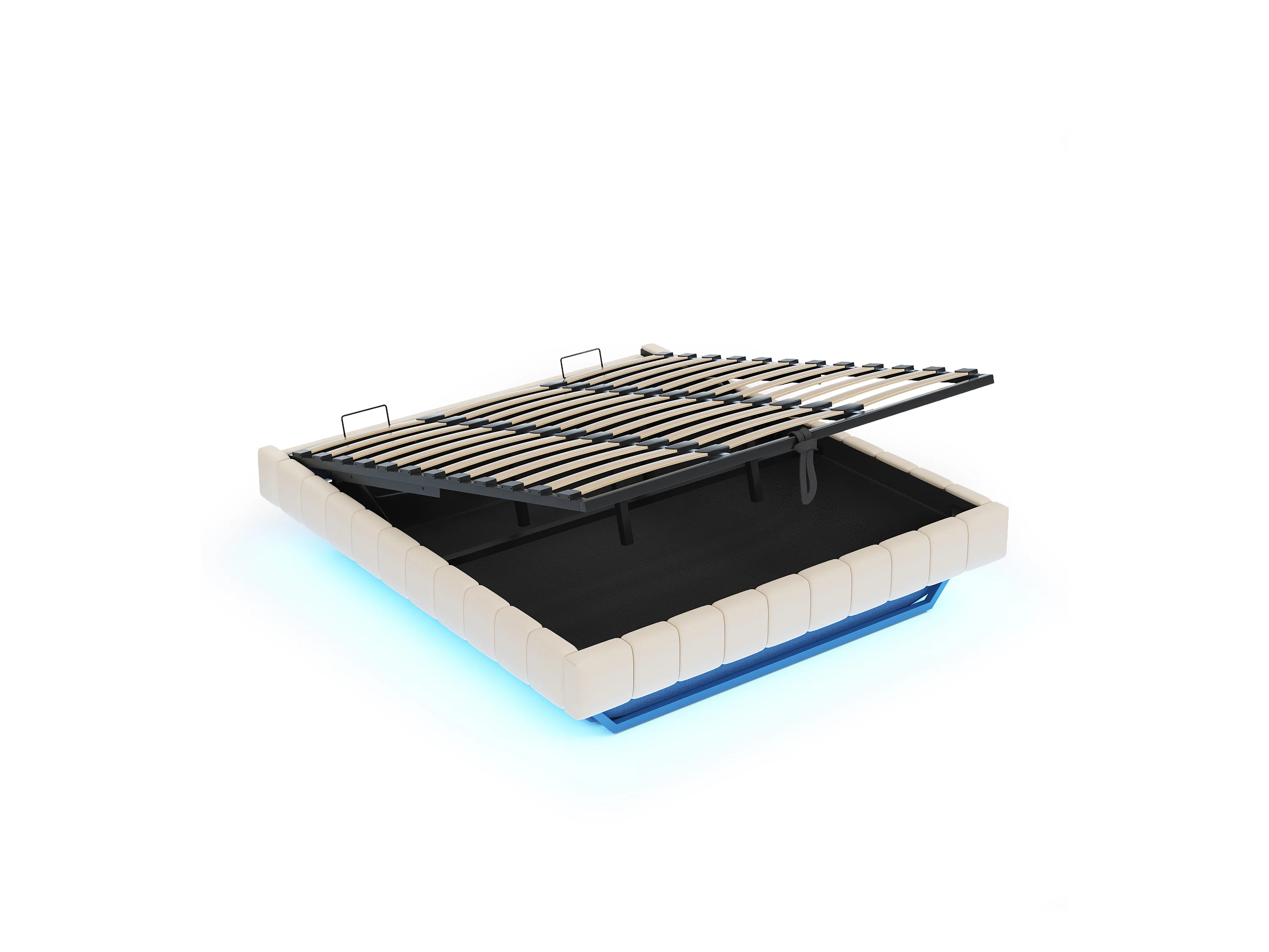 Lit coffre rembourré 180x200 cm - sans tête de lit - avec éclairage LED - lin - beige (matelas non inclus)