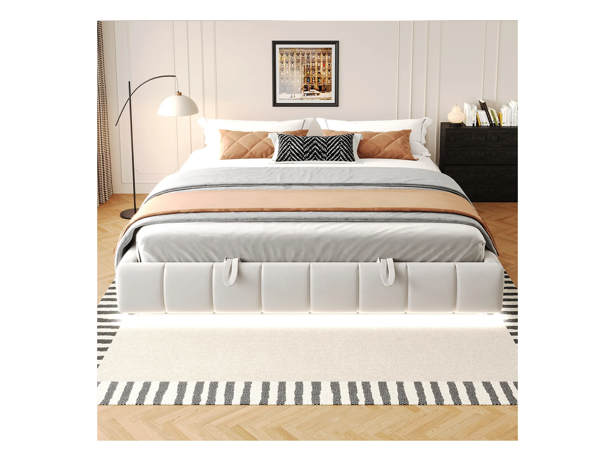 Lit coffre rembourré 180x200cm - avec bande lumineuse LED (couleur unie) - Beige (matelas non inclus)