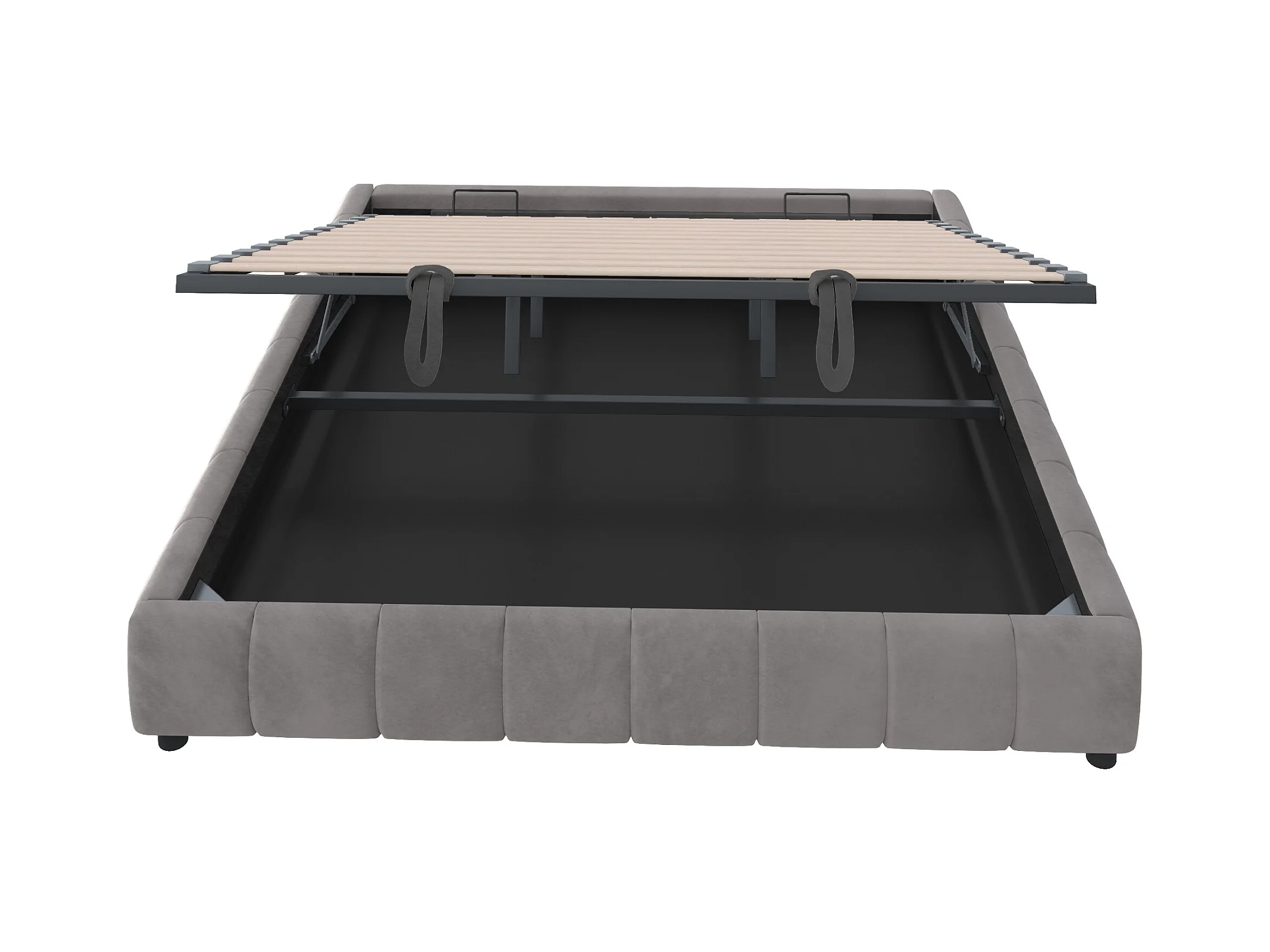 Lit coffre rembourré 180x200cm - avec bande lumineuse LED (couleur unie) - Gris (matelas non inclus)
