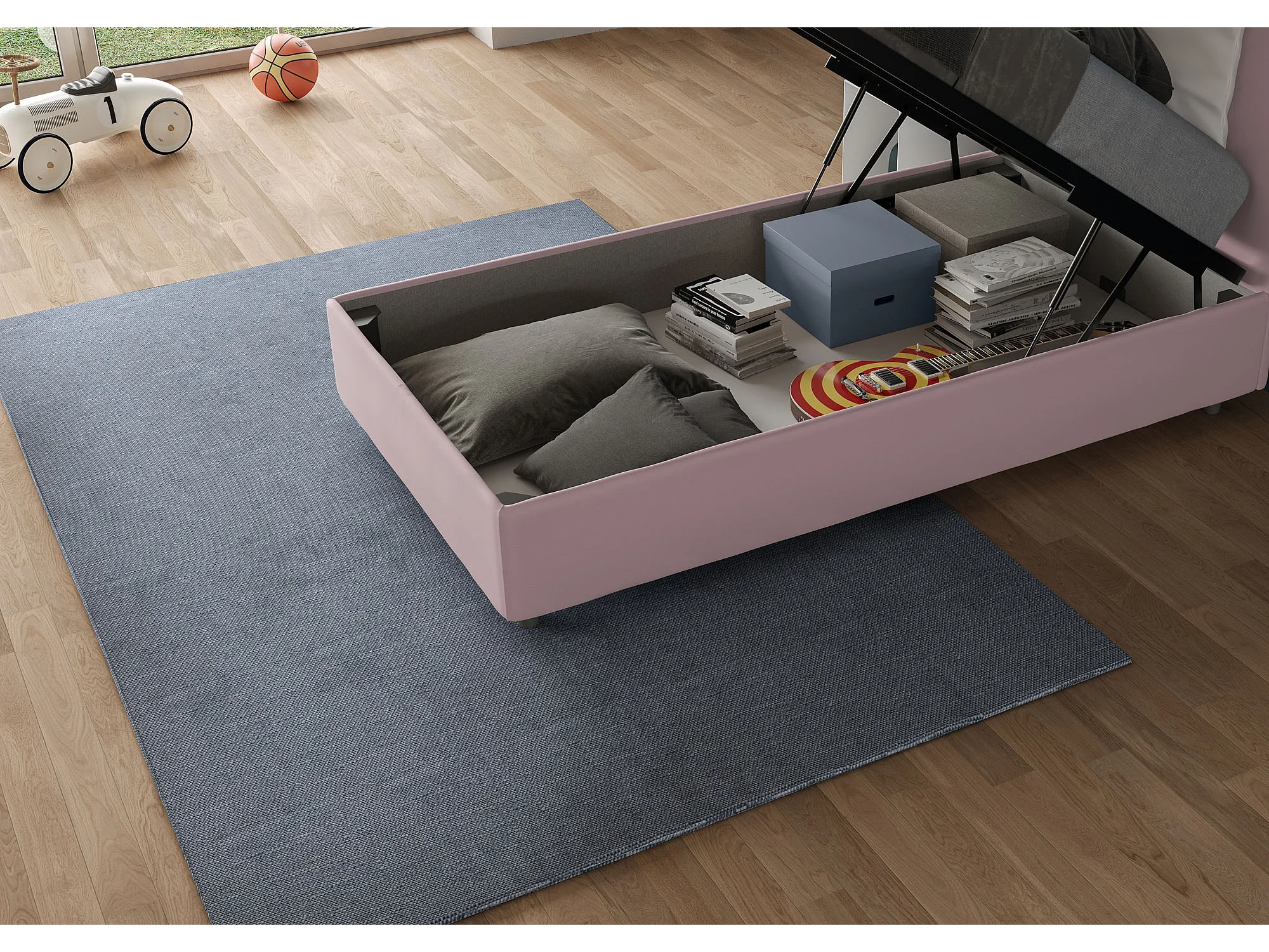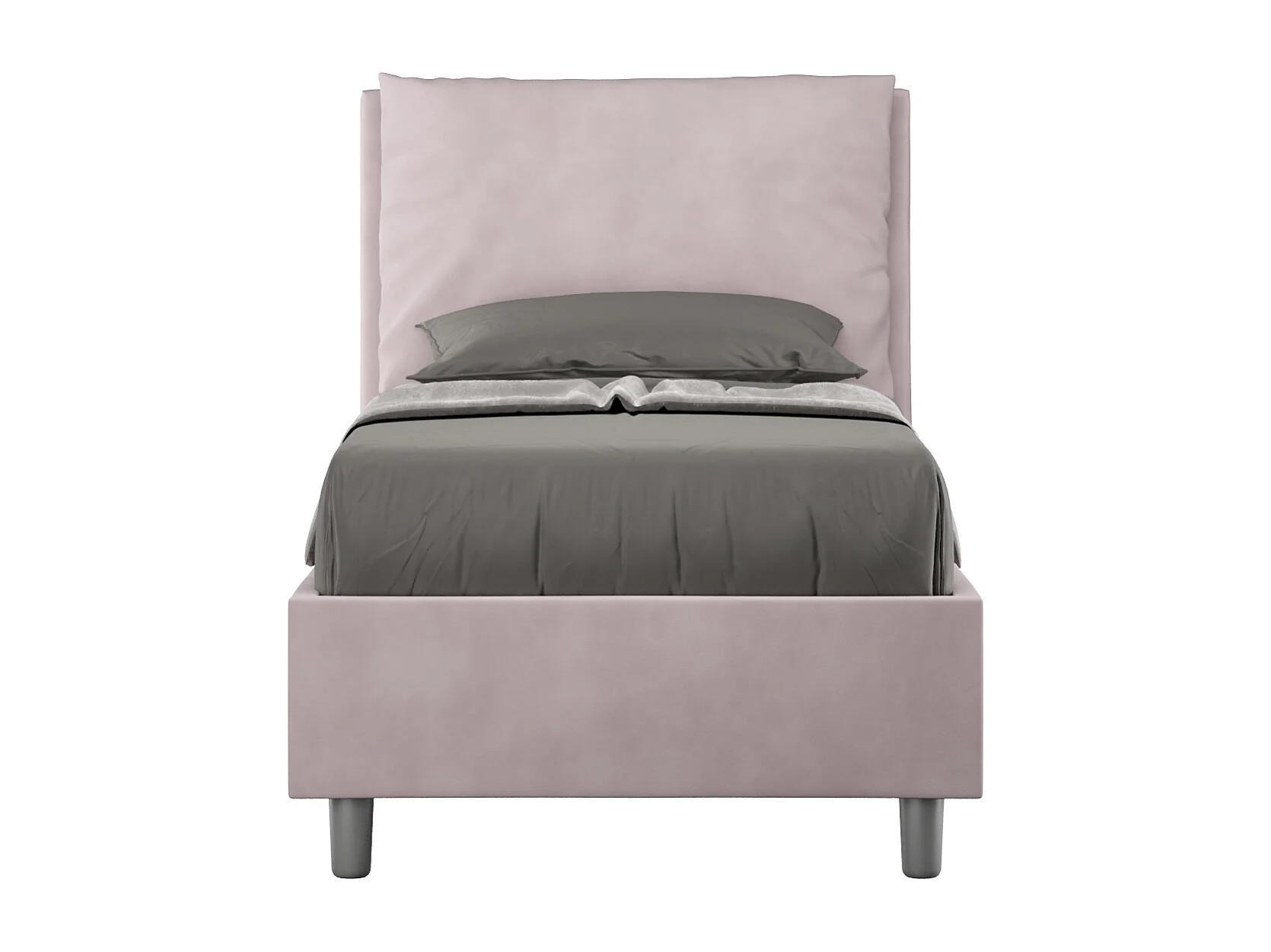 Lit coffre rembourré Antea 90x190 en microfibre glycine